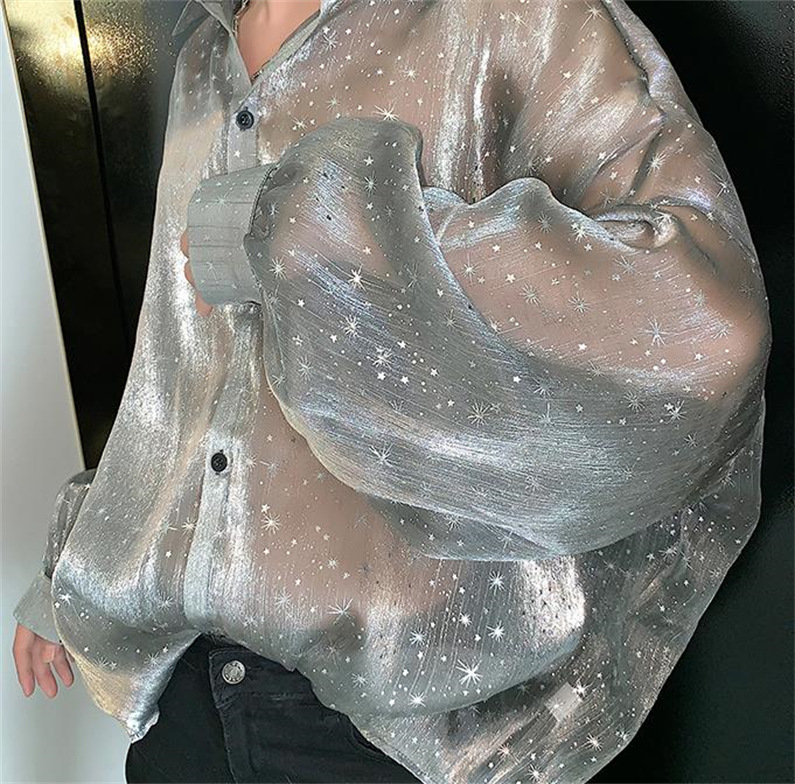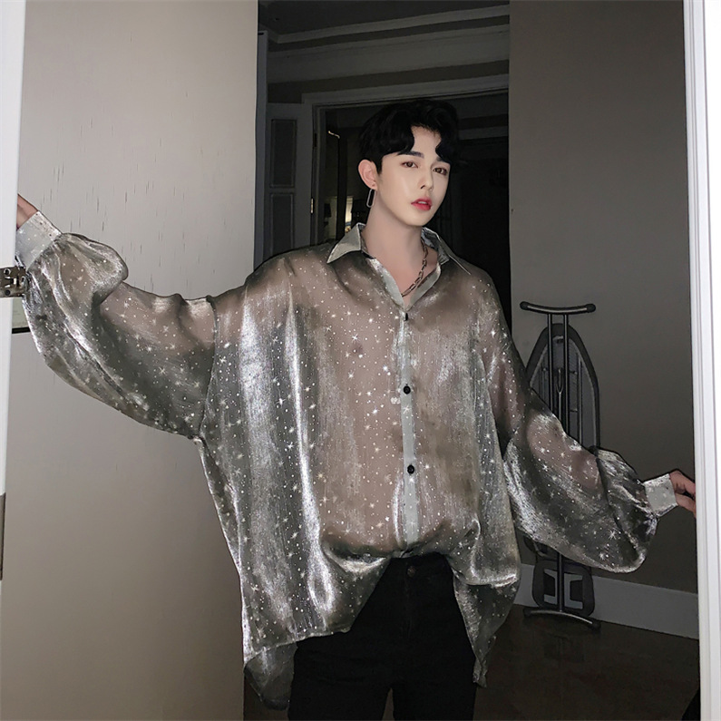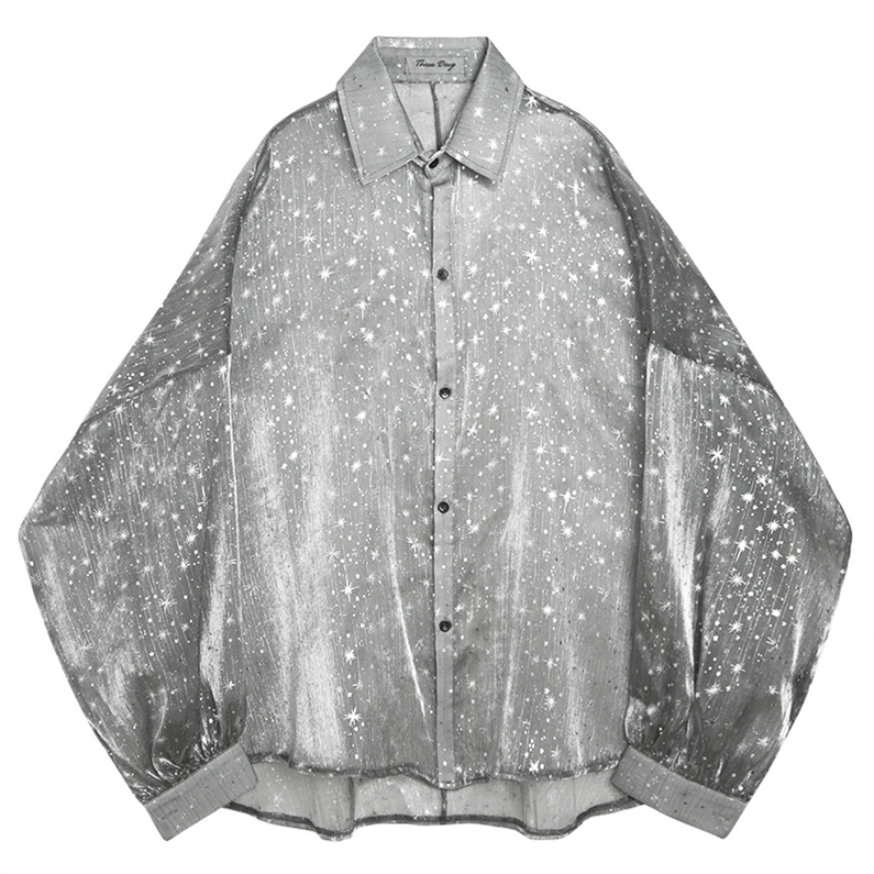 メンズ シャツ カジュアルシャツ 長袖 ゆったり 上着 星空 レディース 男子トップス 公演 発表会 ダンスウェア スタイリッシュ ナイトクラブ 透け感 春秋