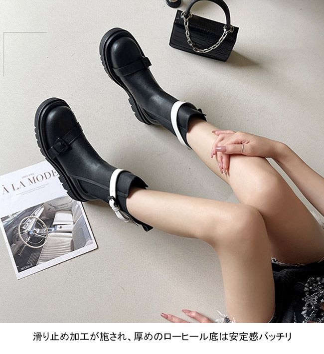 滑り止め加工が施され、厚めのローヒール底は安定感バッチリ