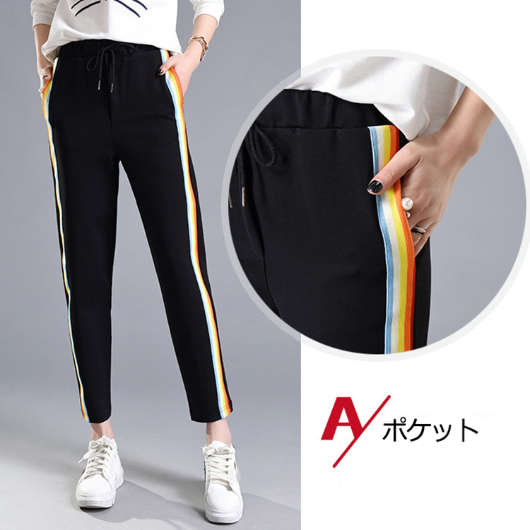 ジョガーパンツ ジャージパンツ スポーツ カジュアル 九分丈 サイドライン シルエット スポーツ お洒落 トレーニング 着痩せ コーデ 春夏
