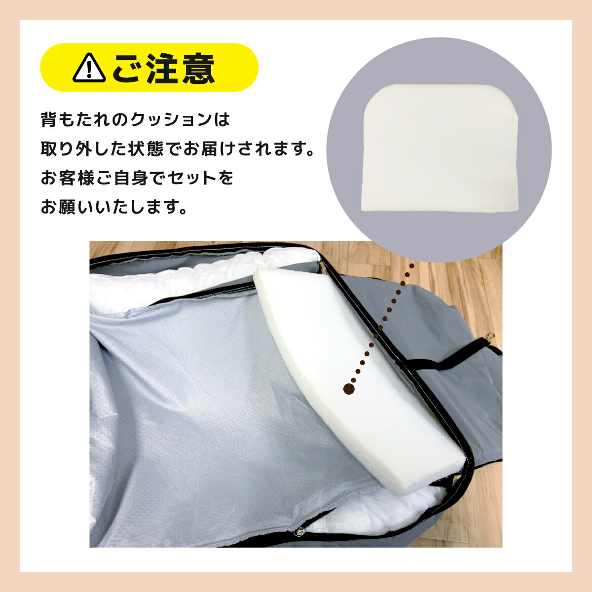 ※クッションセット時、ファスナーは内側の端にございます。