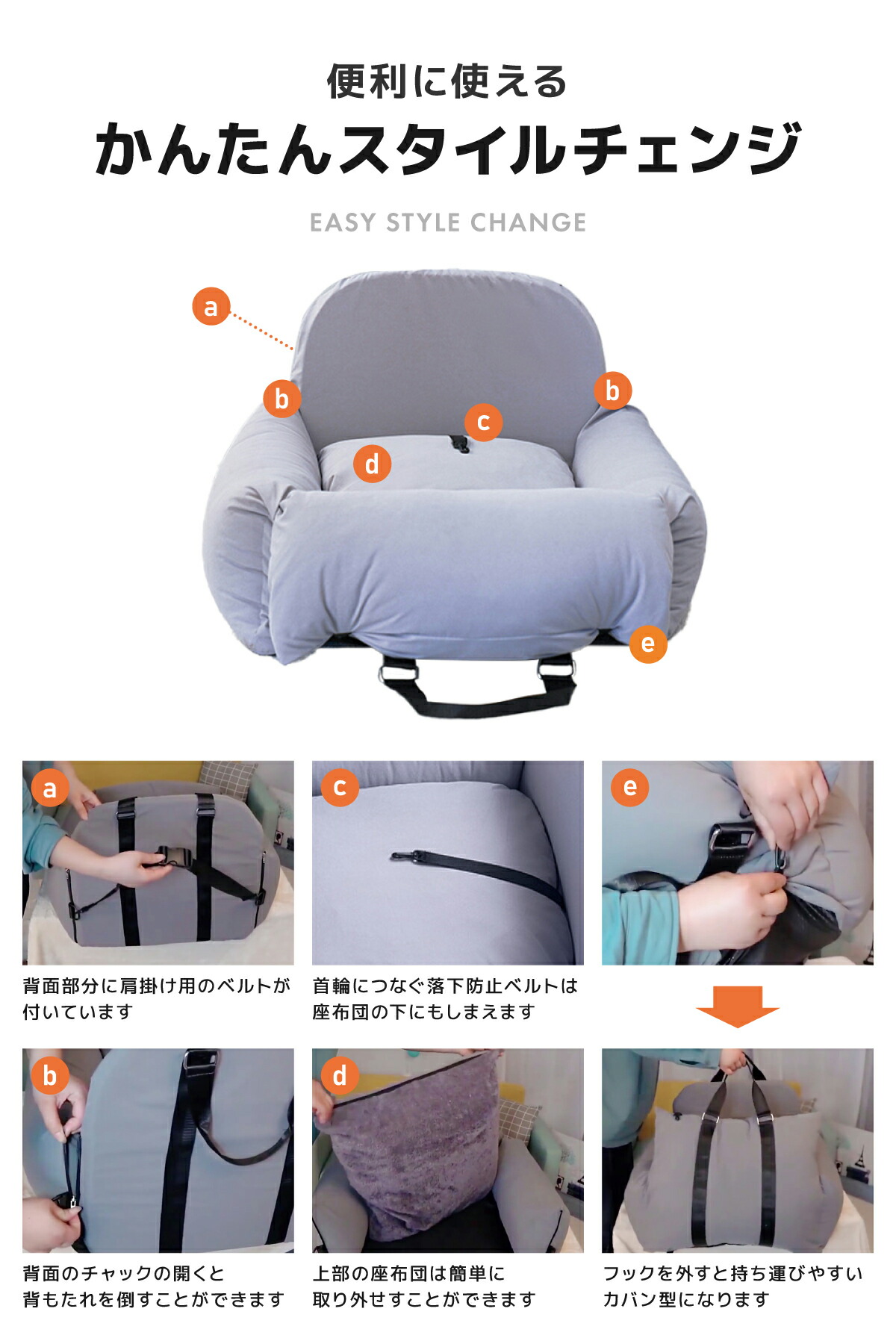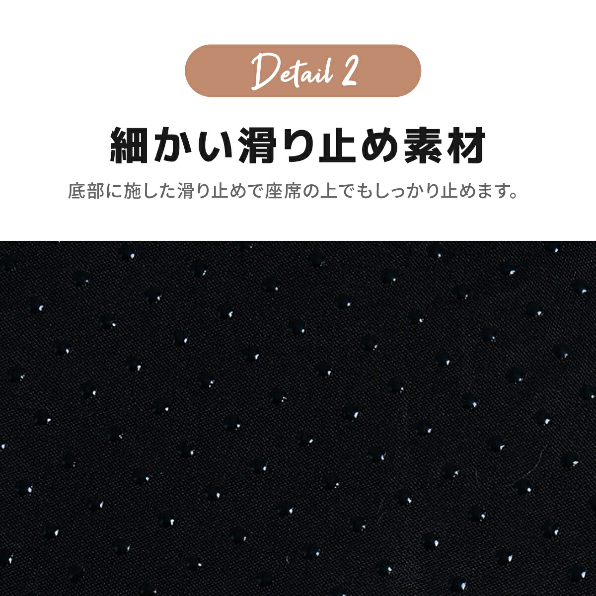底部に施した滑り止めで座席の上でもしっかり止めます。