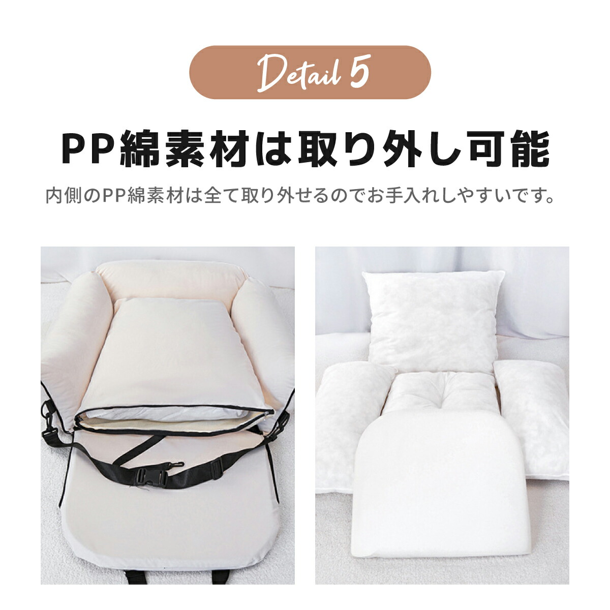 PP綿素材は取り外し可能