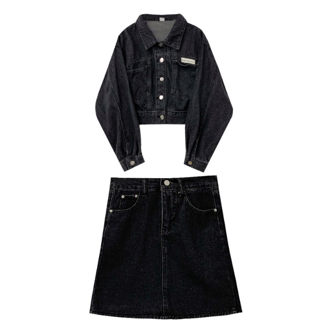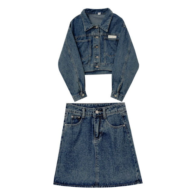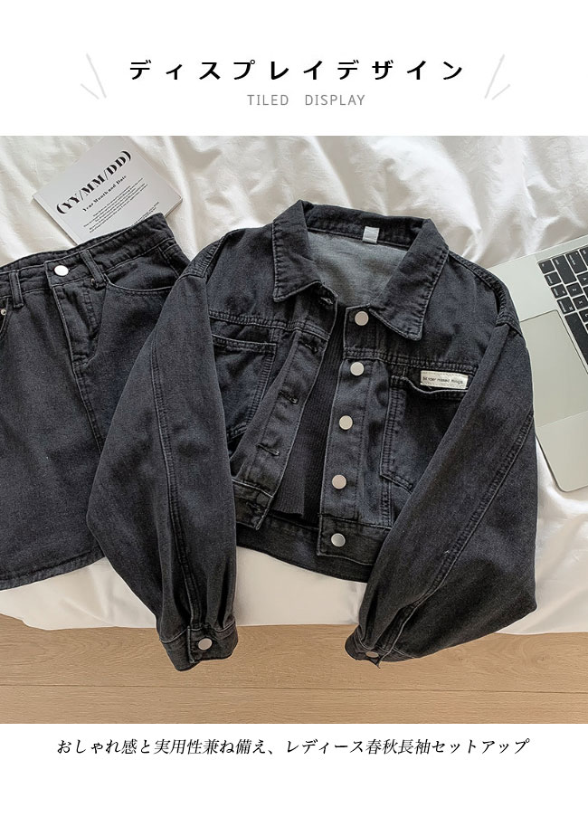 デニムジャケット+デニムスカートの上下2点セット