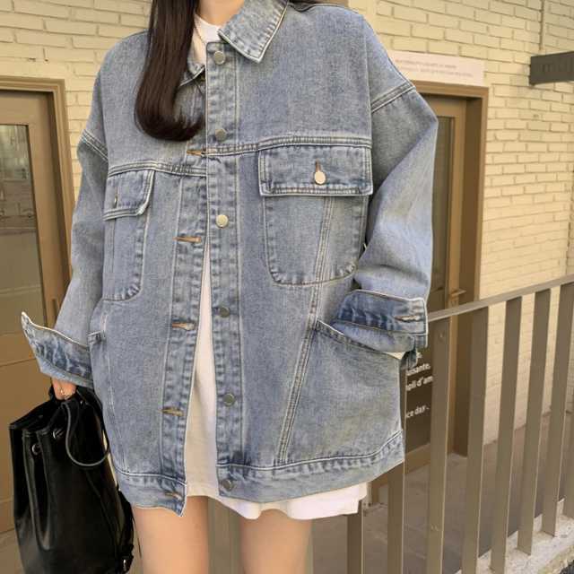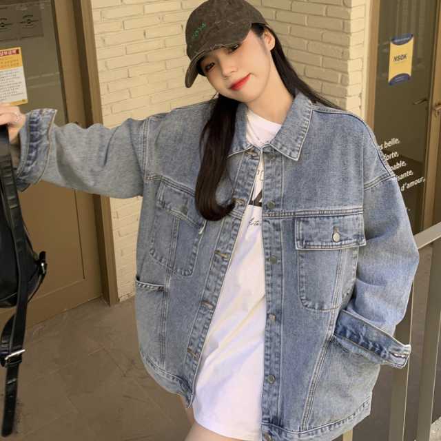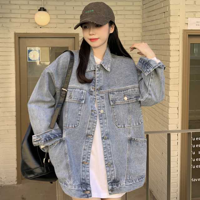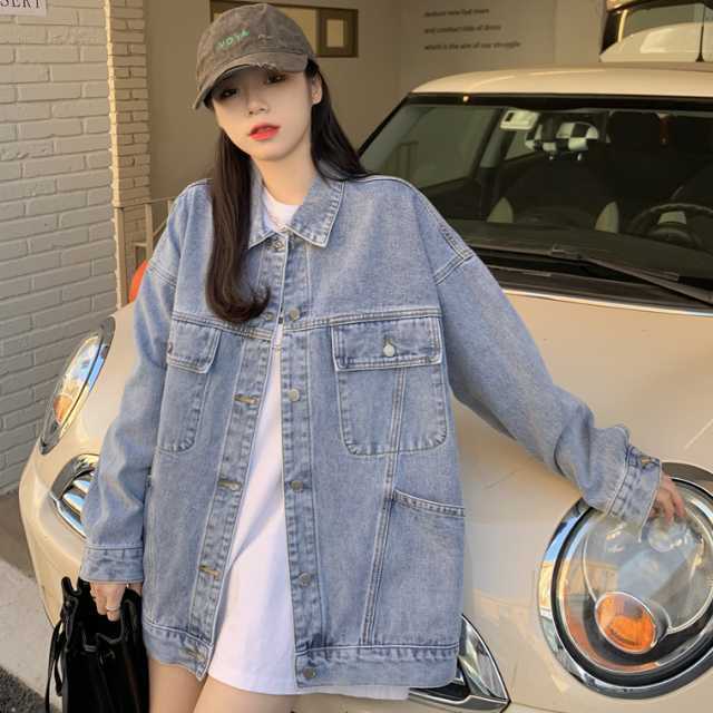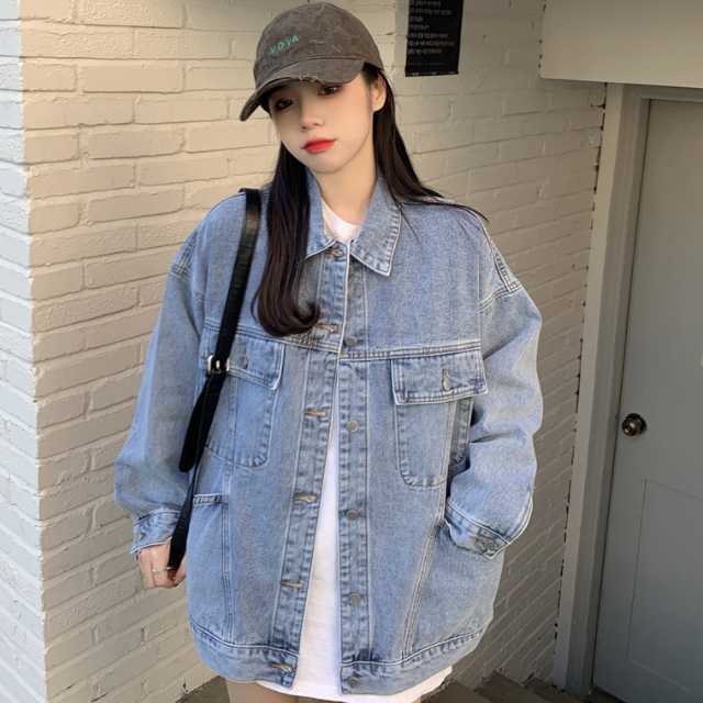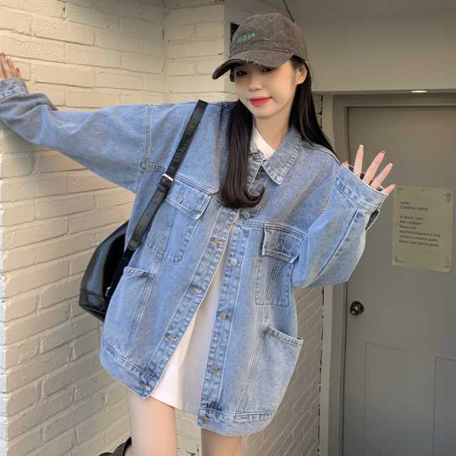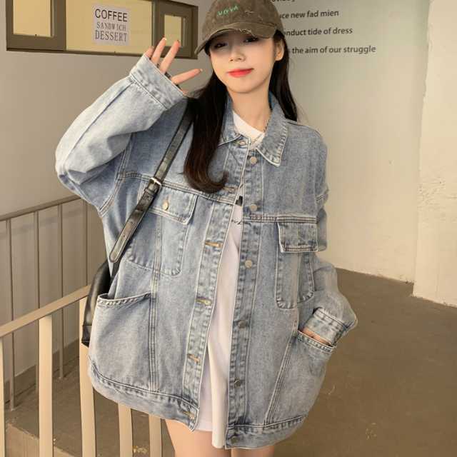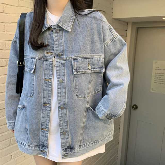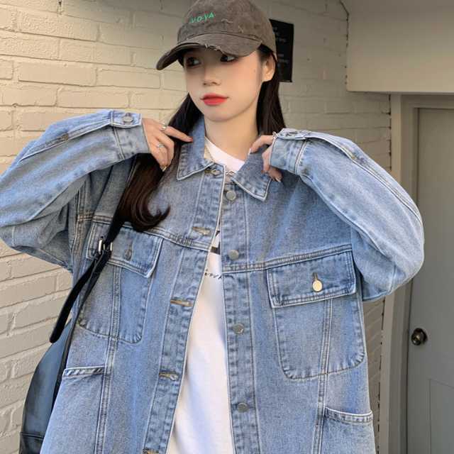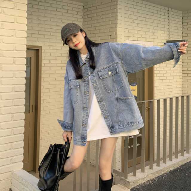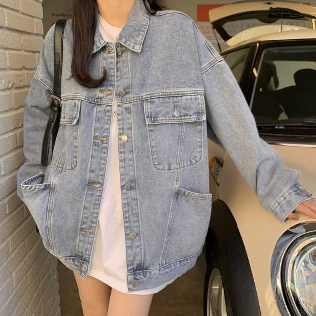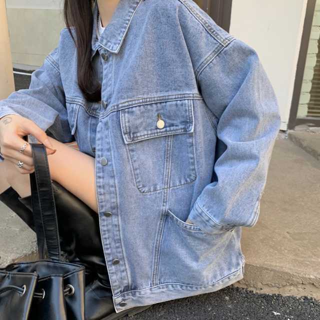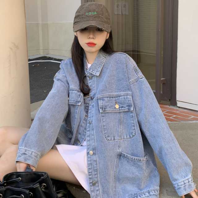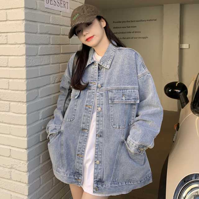 アウター デニム ジャケット デニムジャケット レディース ライトアウター ミディアムジャケット オーバーサイズ 襟付き キレセク 羽織 長袖