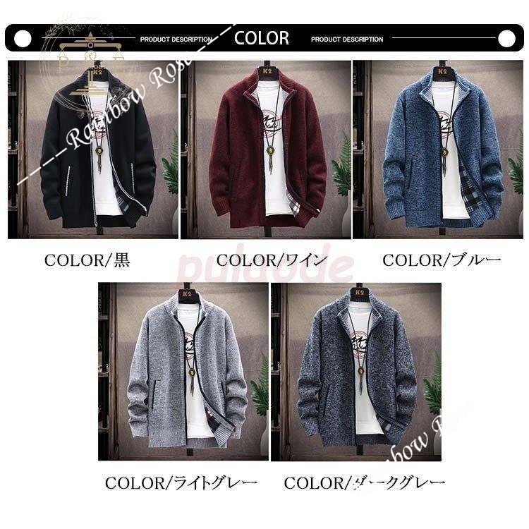 カーディガン メンズ ニット 立ち襟 裏起毛 コーディガン セーター ニットジャケット カジュアル 暖かい 秋 冬 ジャケット 厚地 長袖 無地 カジュアル 防寒