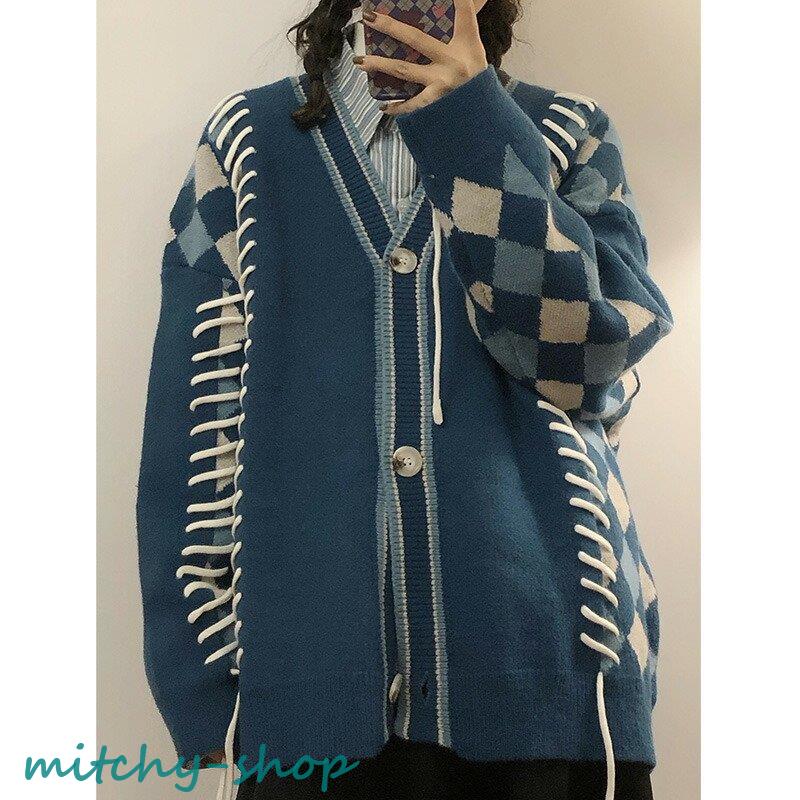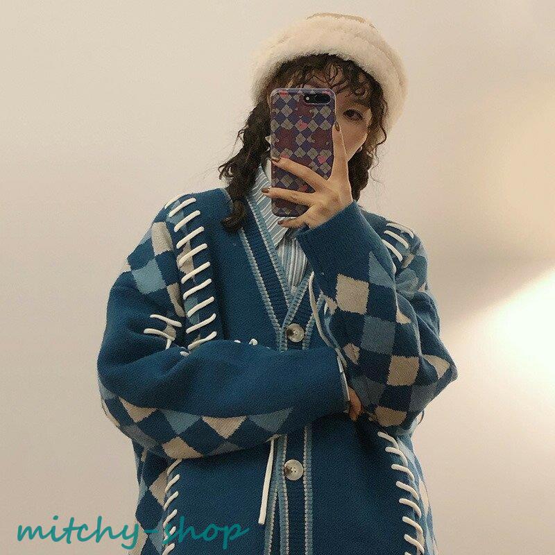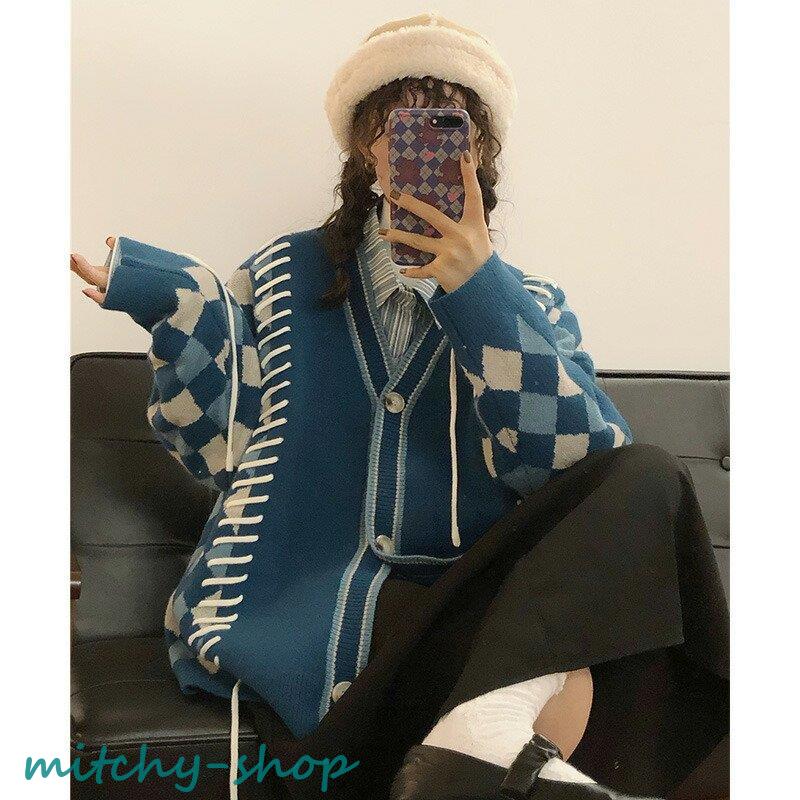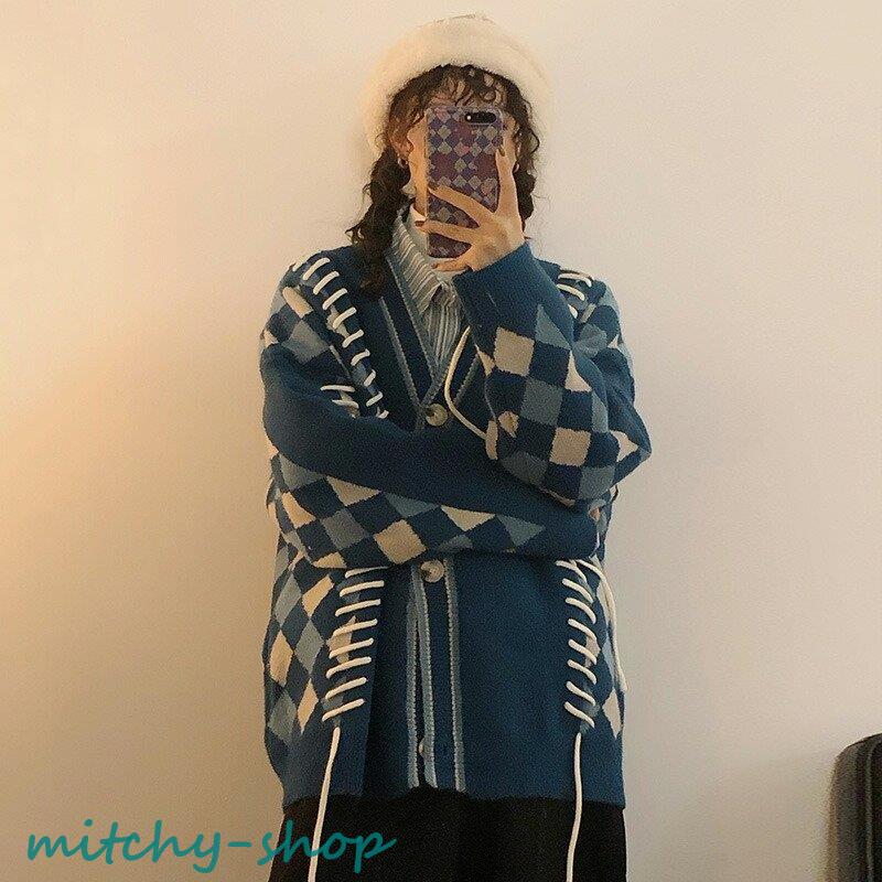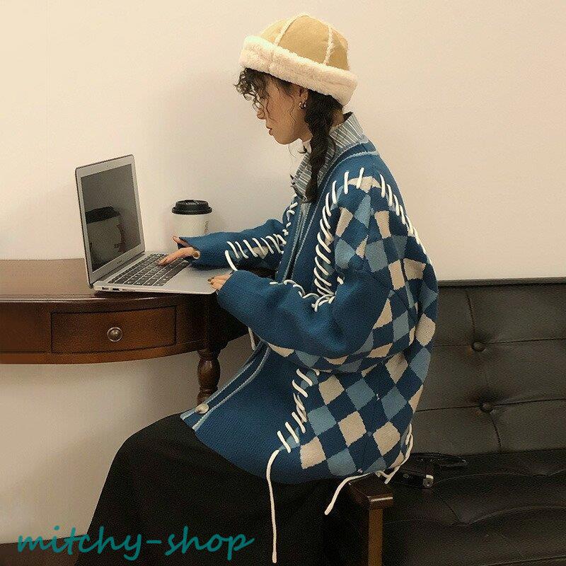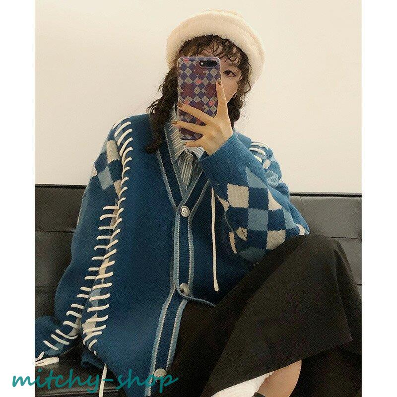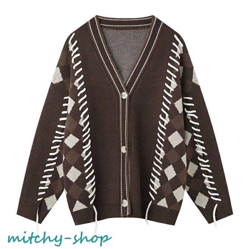 カーディガン アーガイルニットカーディガン ニットカーディガン ニット 長袖 秋冬 アウター 羽織り セーター アーガイル