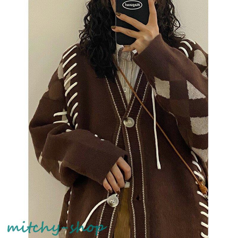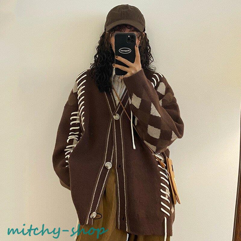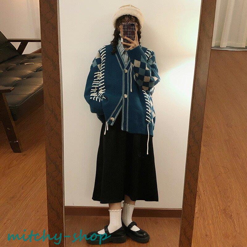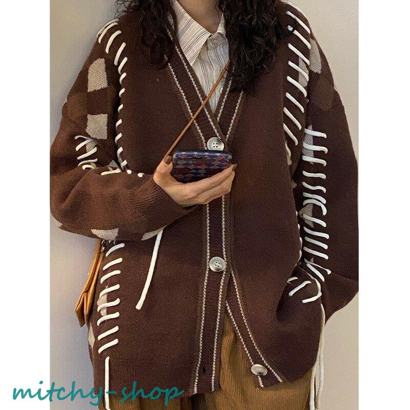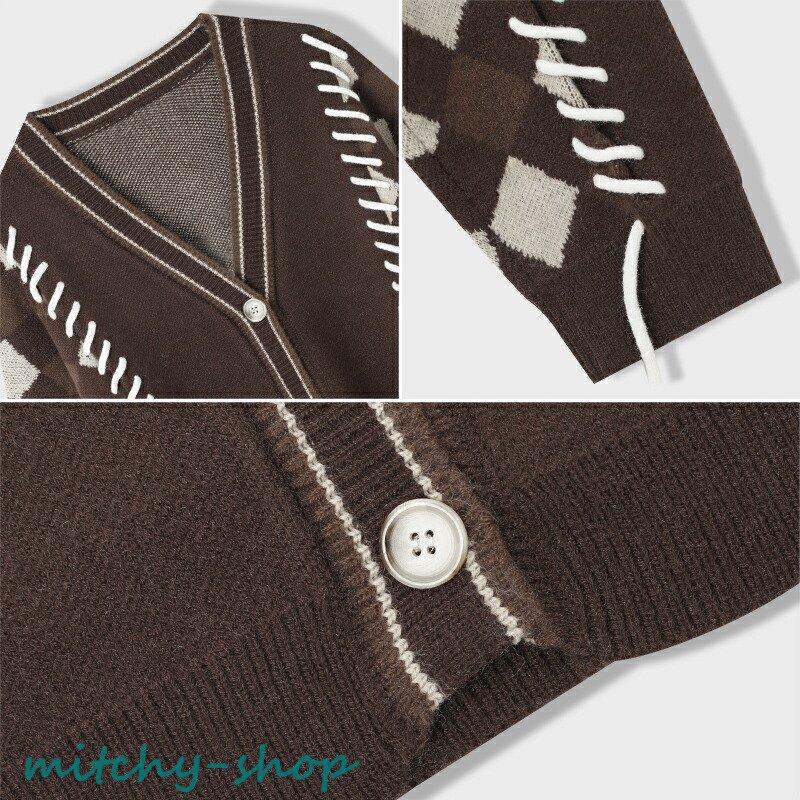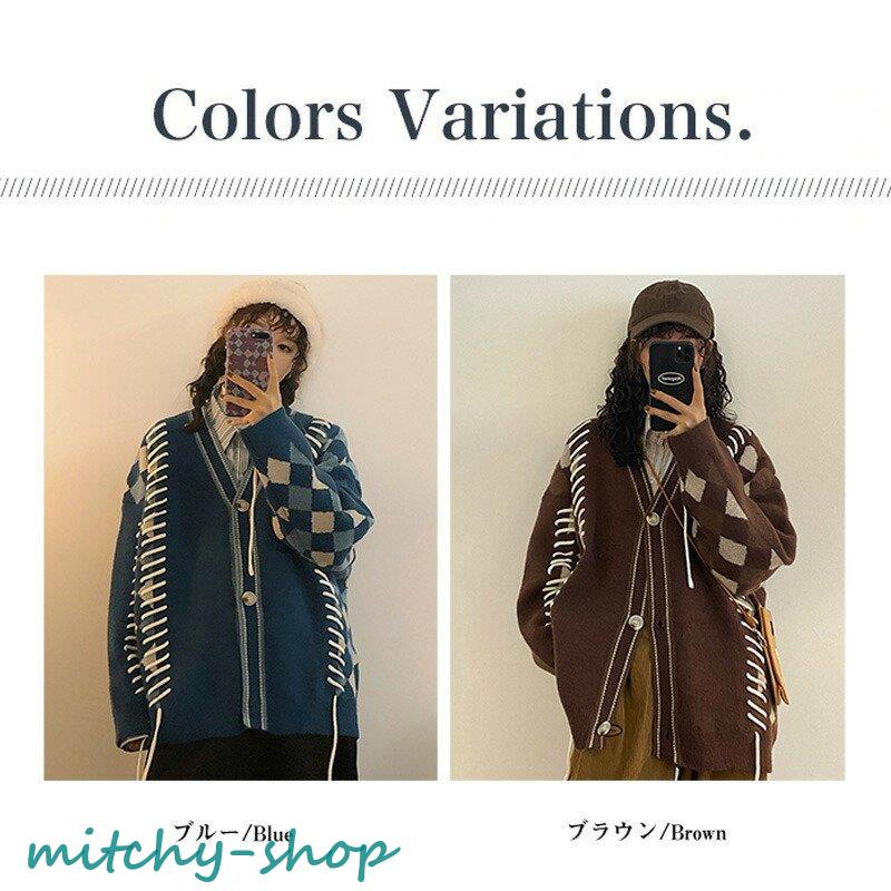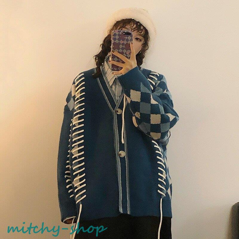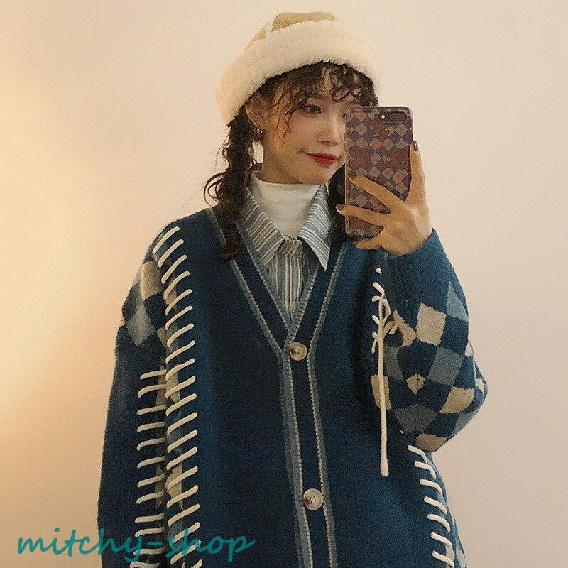 カーディガン アーガイルニットカーディガン ニットカーディガン ニット 長袖 秋冬 アウター 羽織り セーター アーガイル