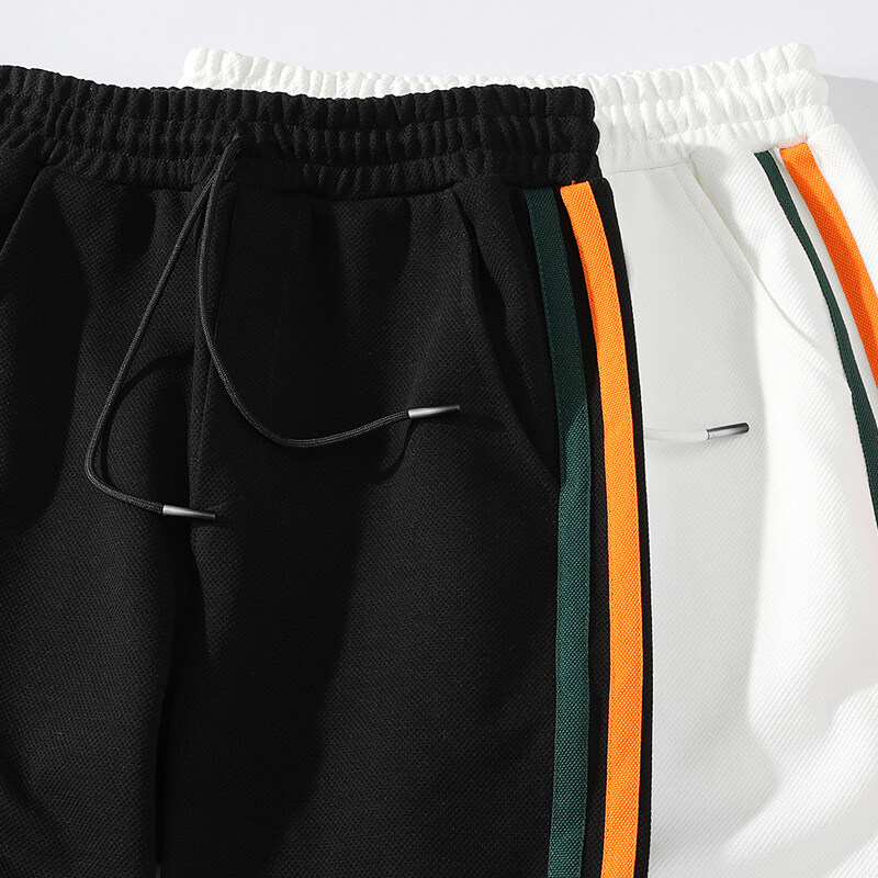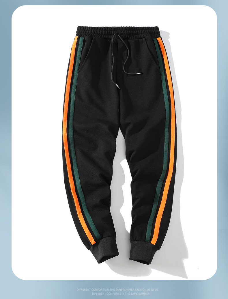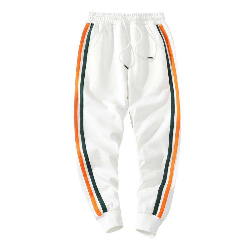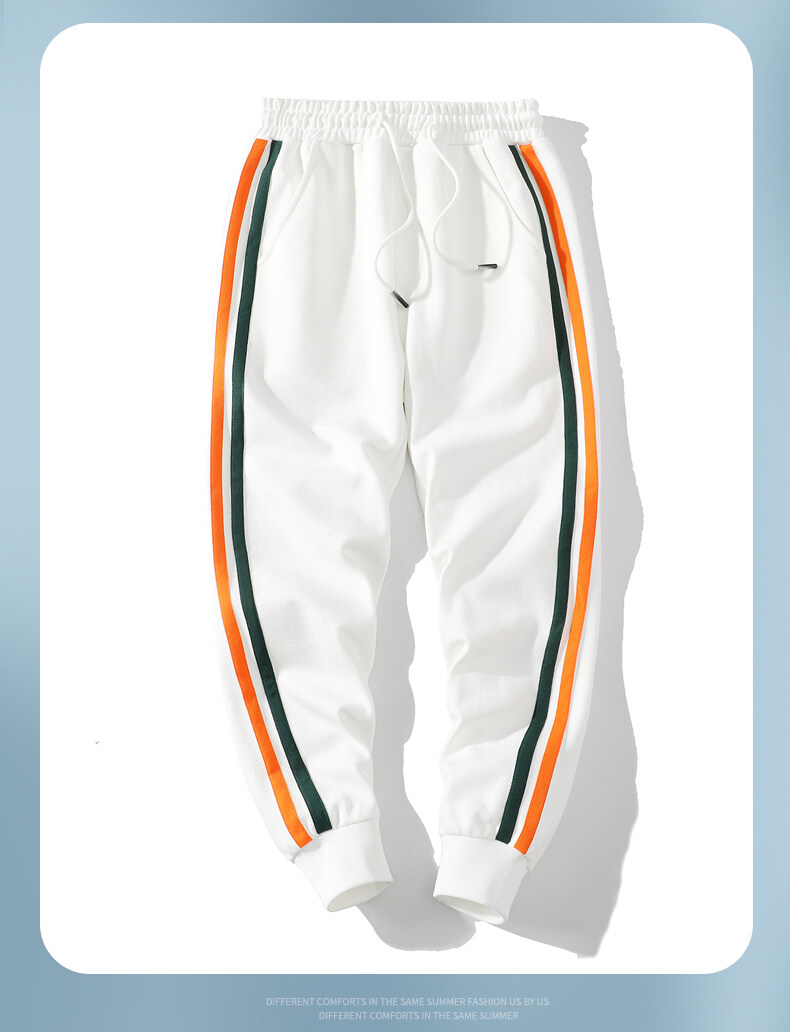 ライン入り ジャージパンツ スウェットパンツ 裾リブ ゴム留め ひも付き スポーツ 部屋着 リラックス 部活 アンクル丈 男性 ボトムス