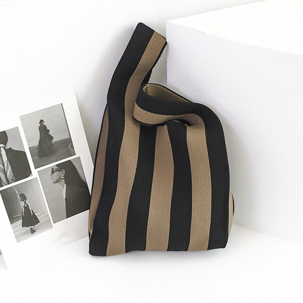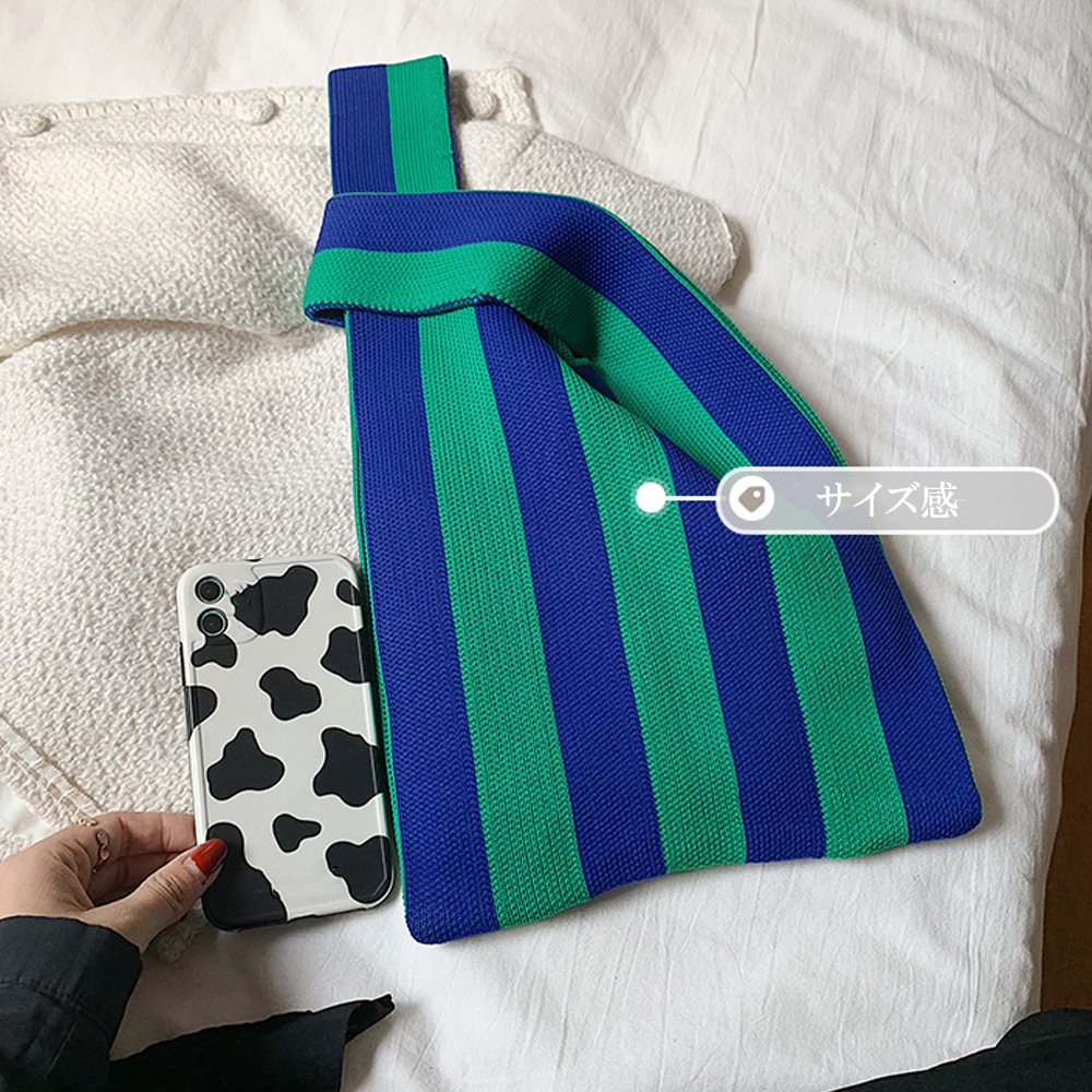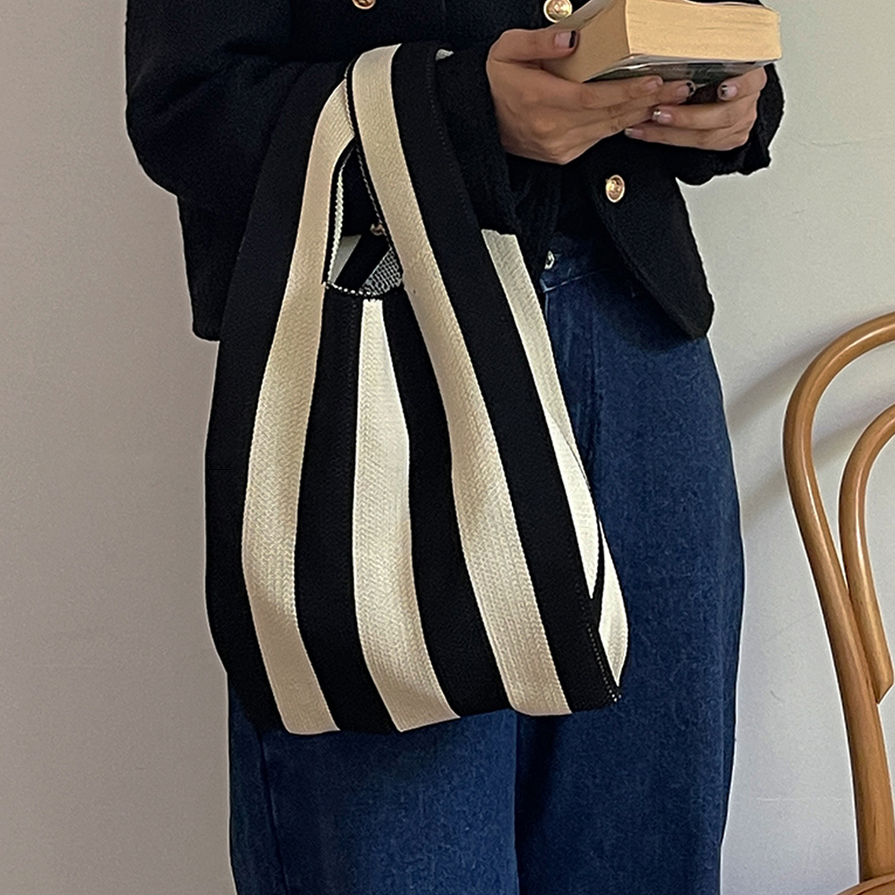 持つだけでコーディネートのワンポイントになるストライプ柄ニットバッグです