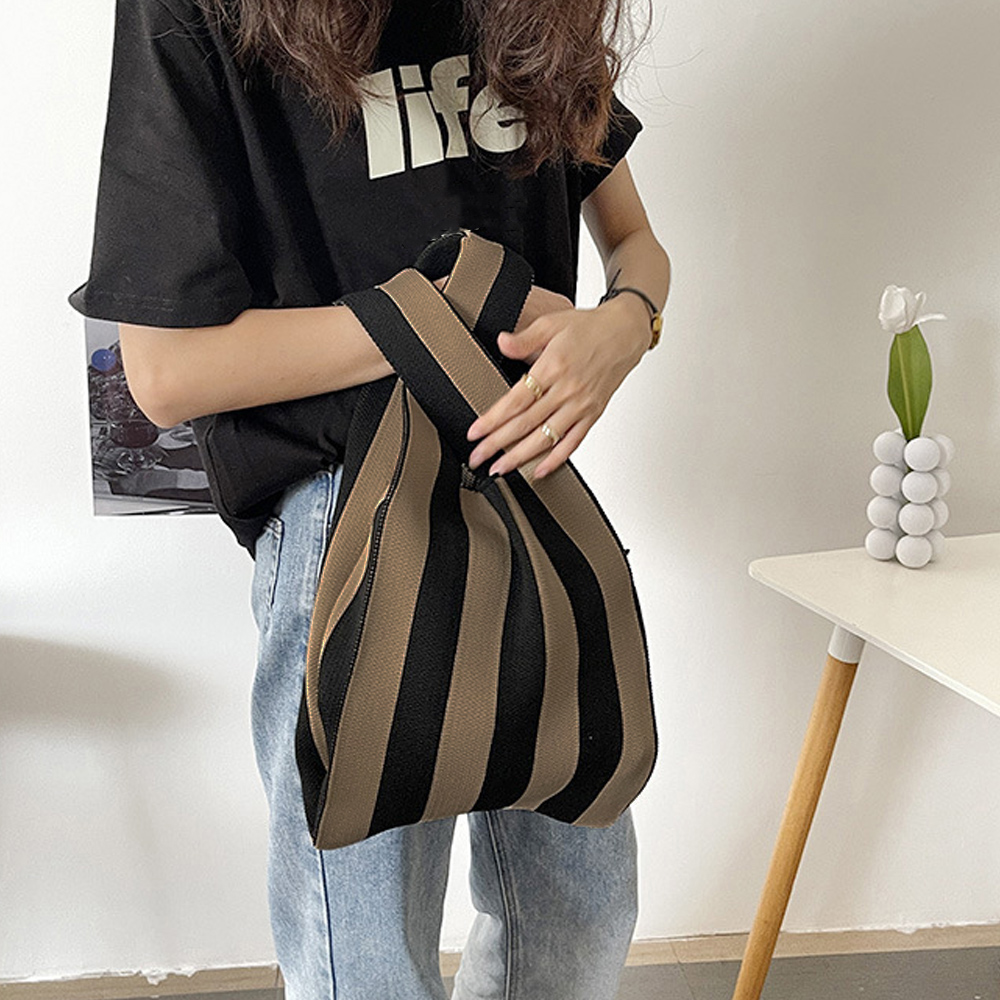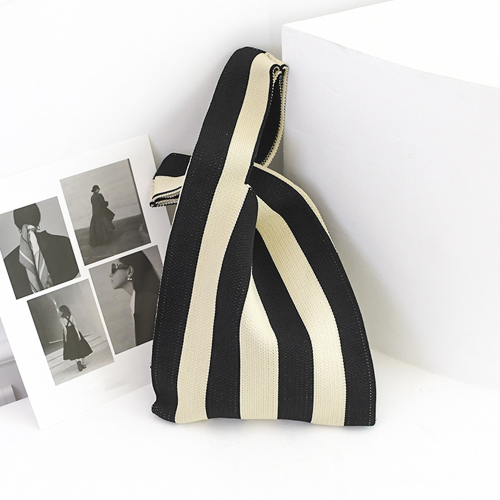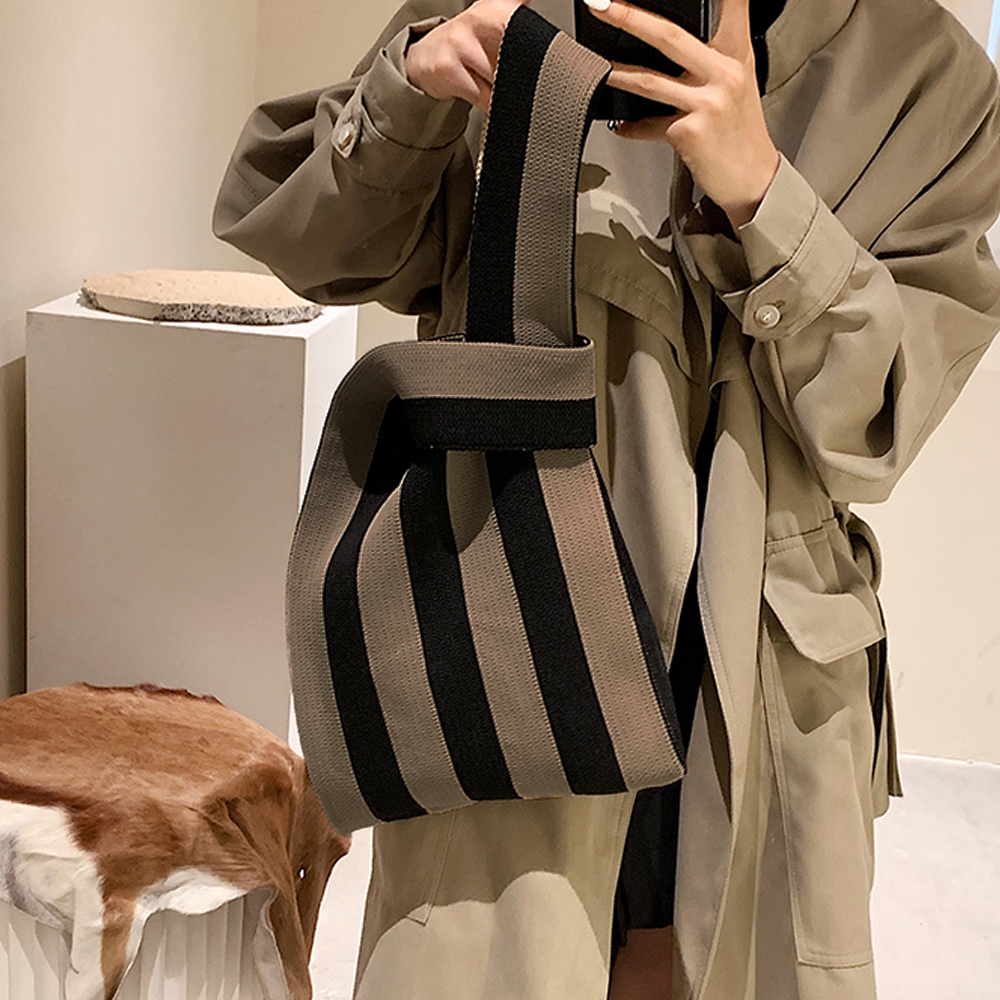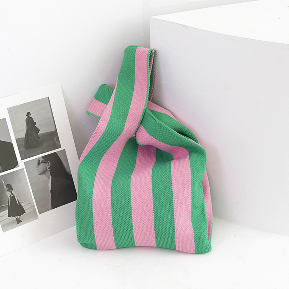 持つだけでコーディネートのワンポイントになるストライプ柄ニットバッグです