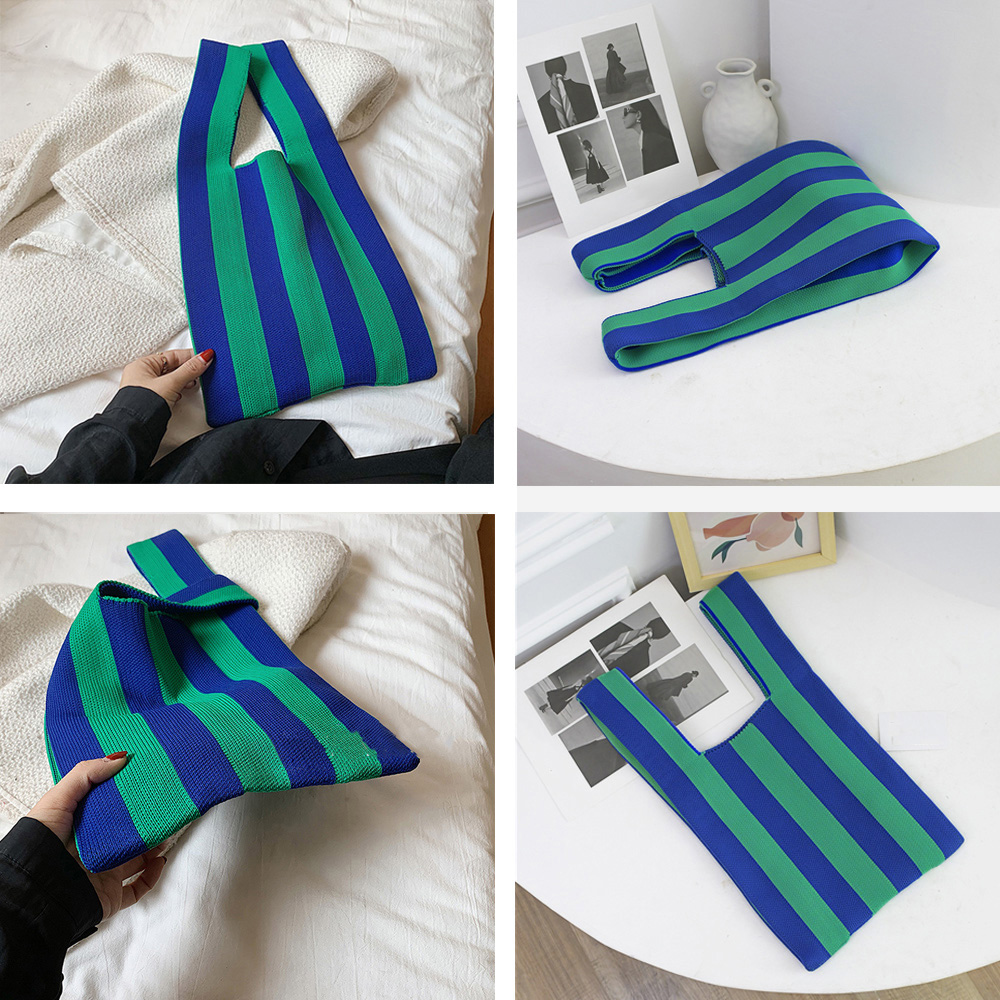 レディース おしゃれ ニット編みバッグ 春秋冬 折り畳み かばん 韓国ファッション 軽量 ハンドバッグ 配色