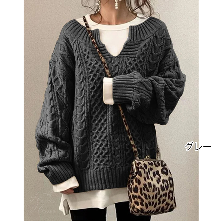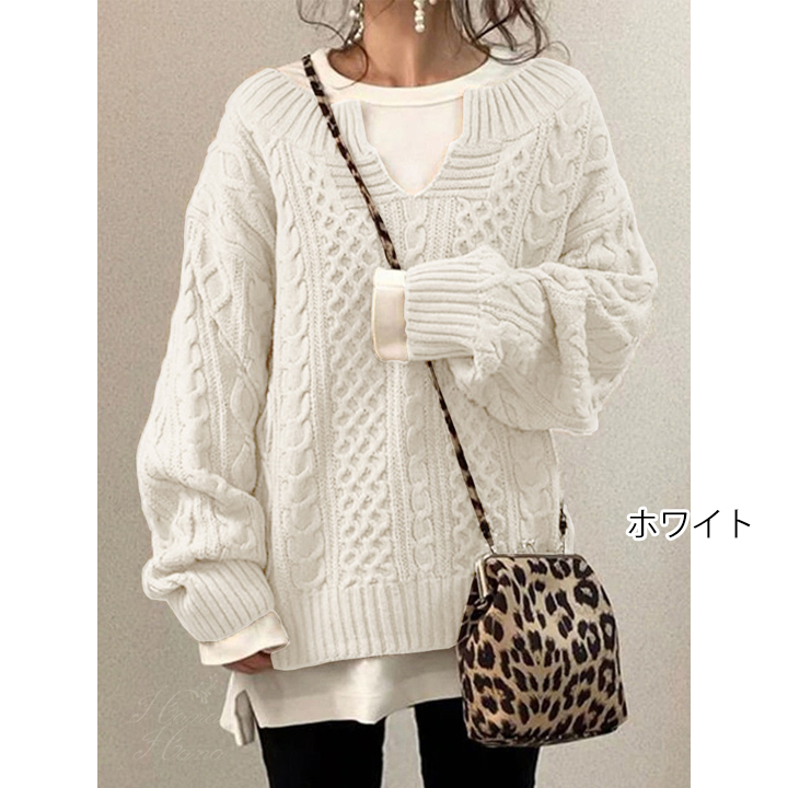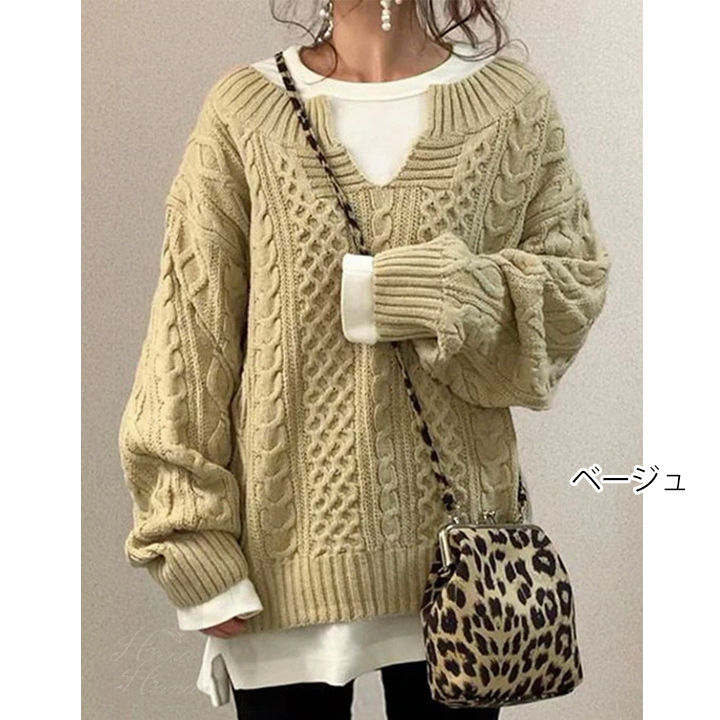 ニット ケーブルニット キーネックニット オーバーサイズ ざっくりニット セーター 送料無料 トップス レディース あすつく チャンキーニット 秋冬