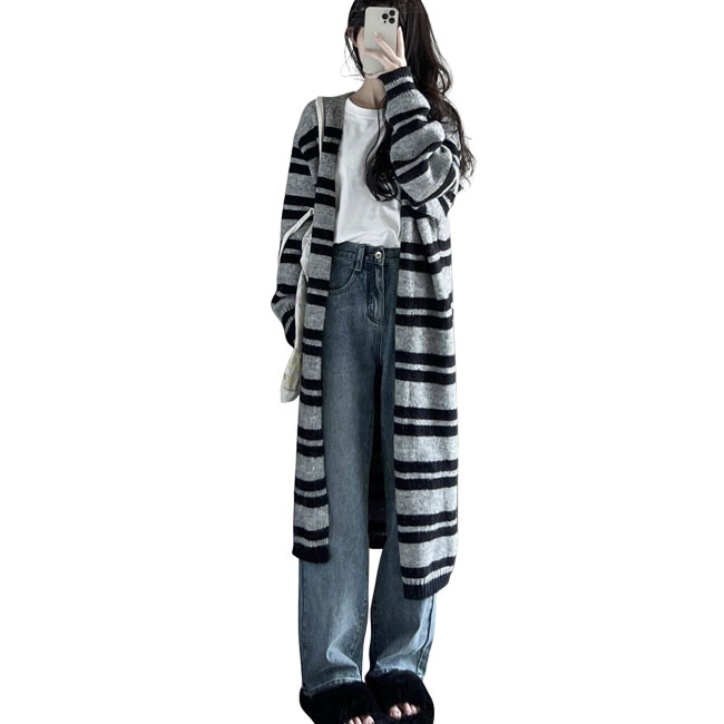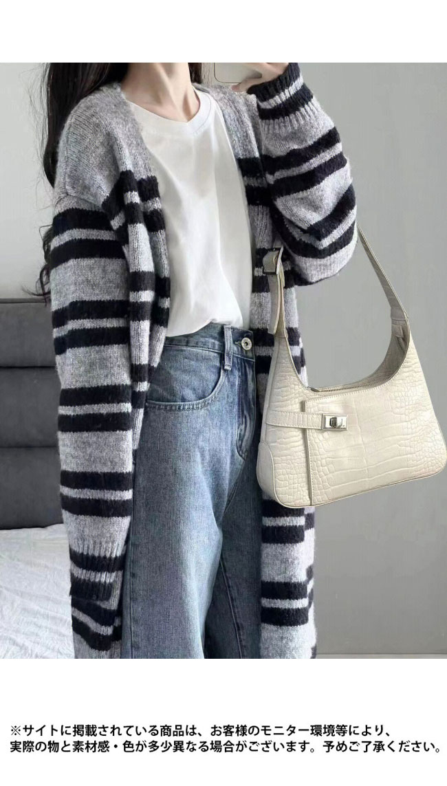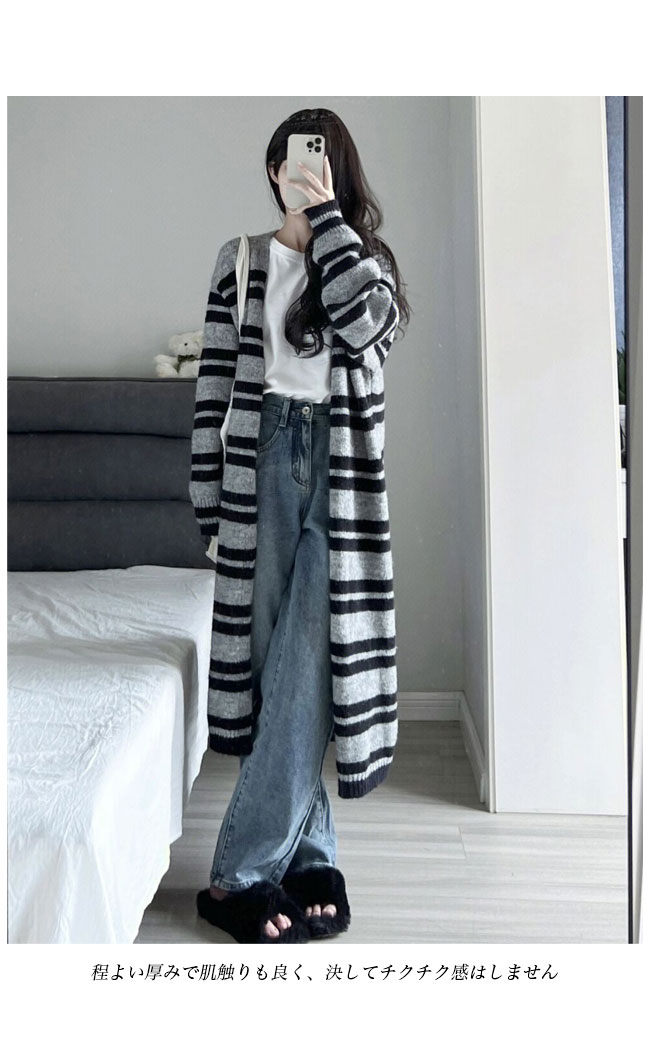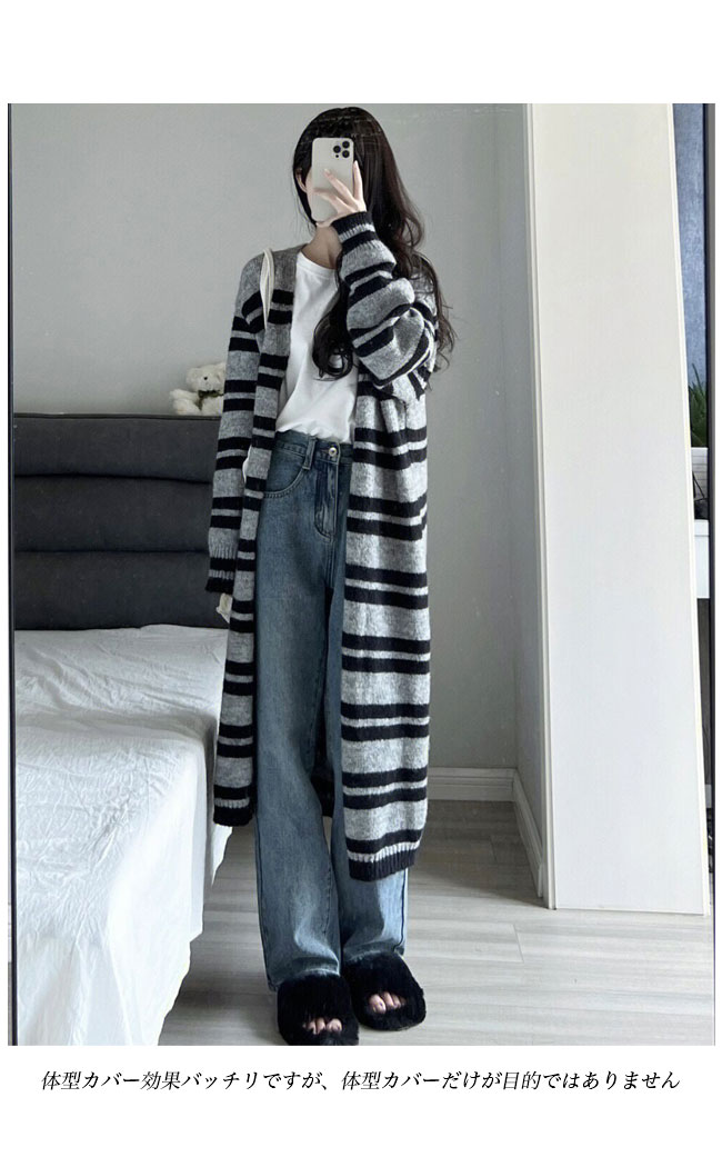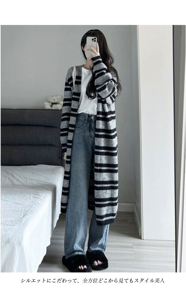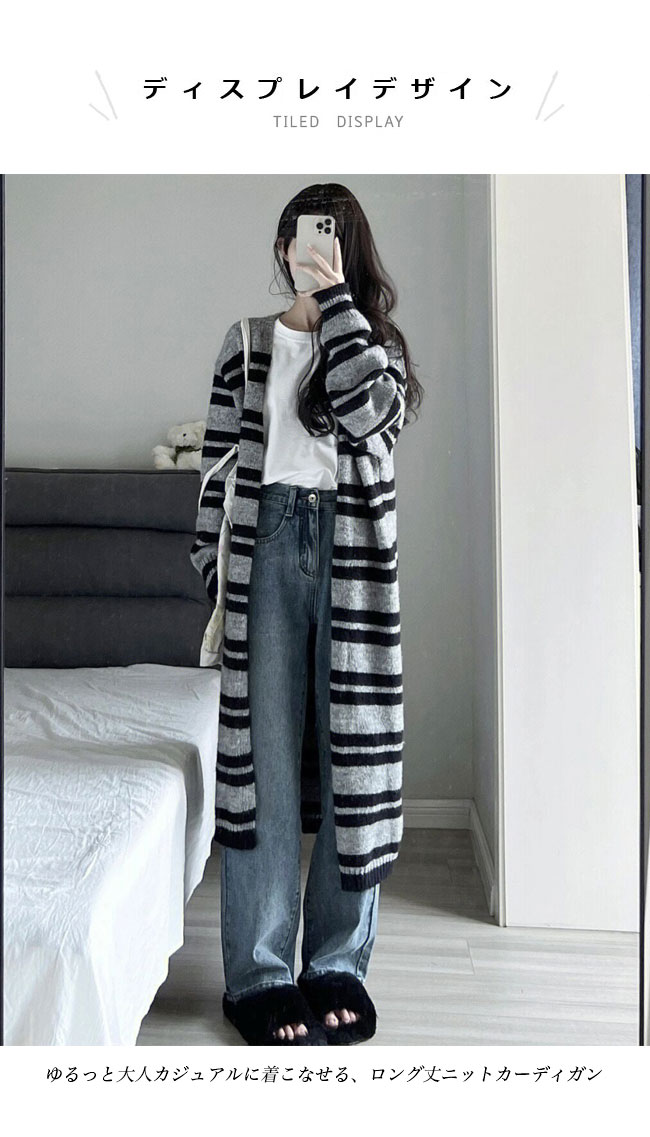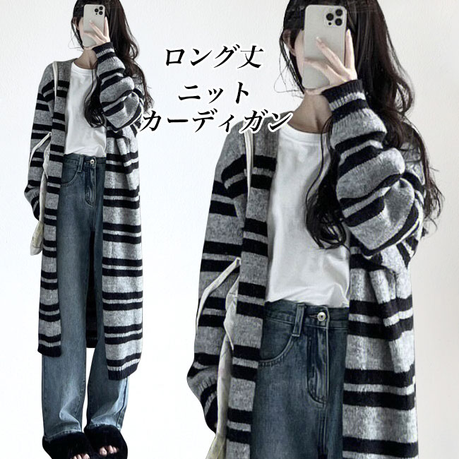 ロングカーディガン ニット レディース ボーダー ニットカーディガン
