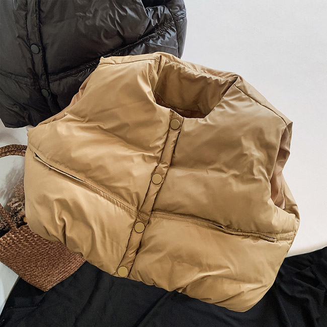ダウンベスト キッズ アウター ダウンコート 無地 クルーネック ノースリーブ 前開き 厚手 軽量 トップス カジュアル 前ボタン ポケット付き ゆったり シンプル 防寒 保温 秋冬 子供服 男児 女児 男女兼用 ユニセックス 普段着 アウトドア
