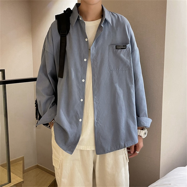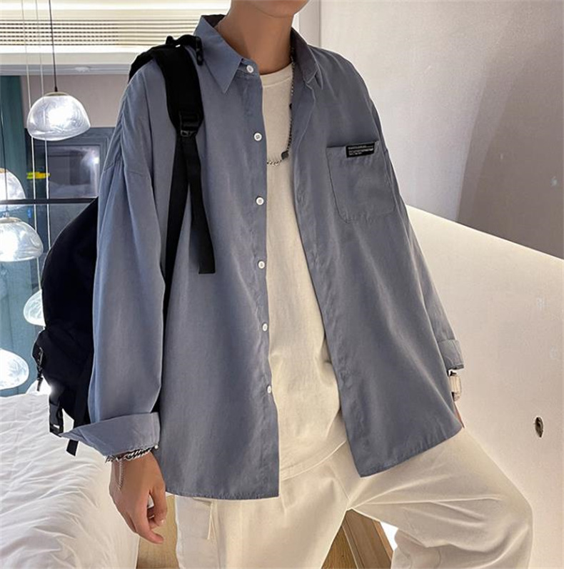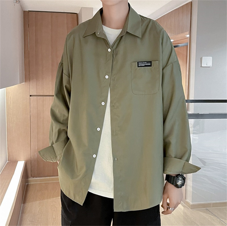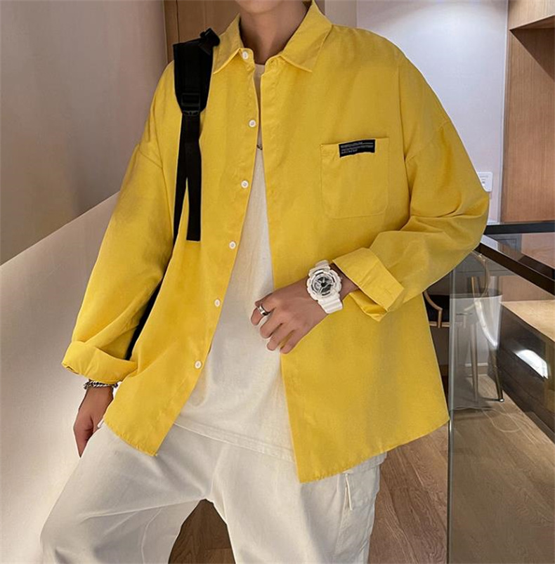 メンズ シャツ カジュアルシャツ 長袖 無地 ワーク 上着 春秋 スタイリッシュ 青少年 スクール ワイシャツ 7色展開 通勤 通学 男子トップス 普段着 ポケット