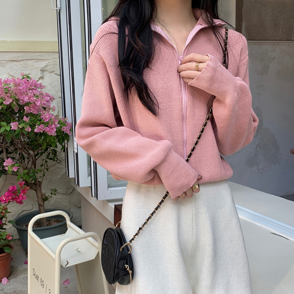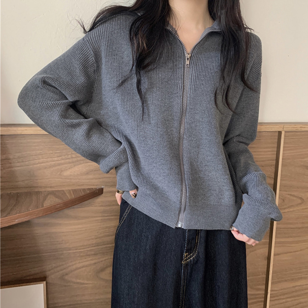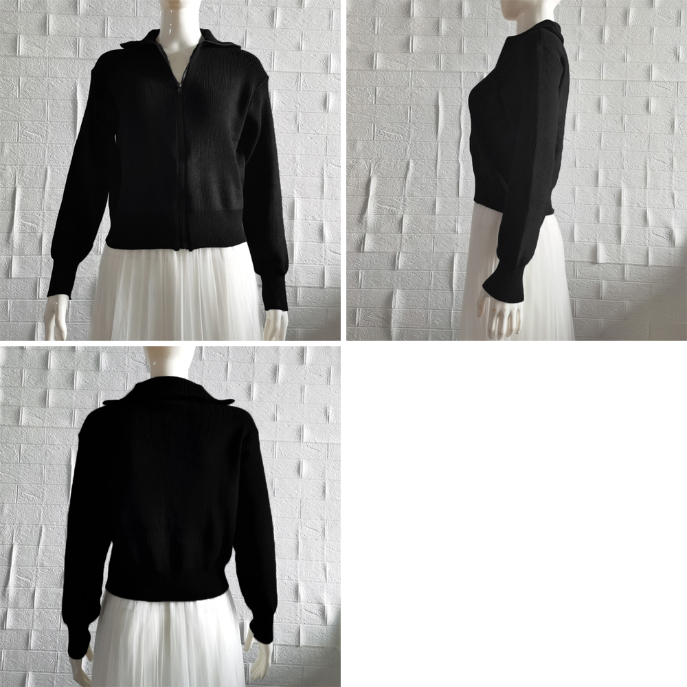 ニットカーディガン レディース ファスナー付き ニットジャケット 長袖 ニットトップス カジュアル ニットアウター 無地
