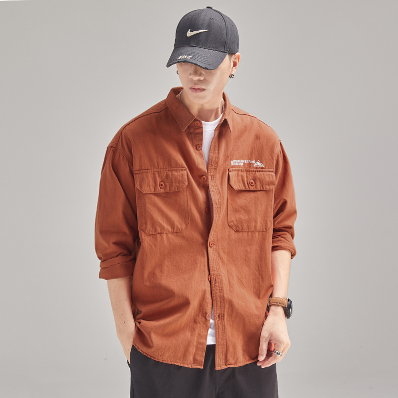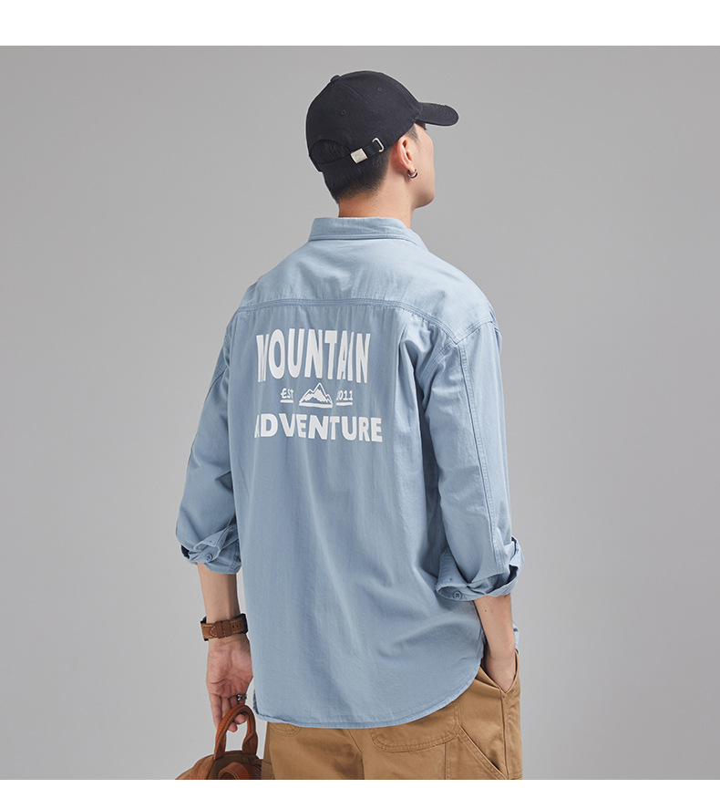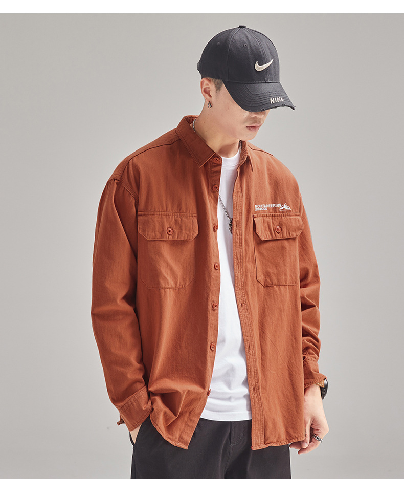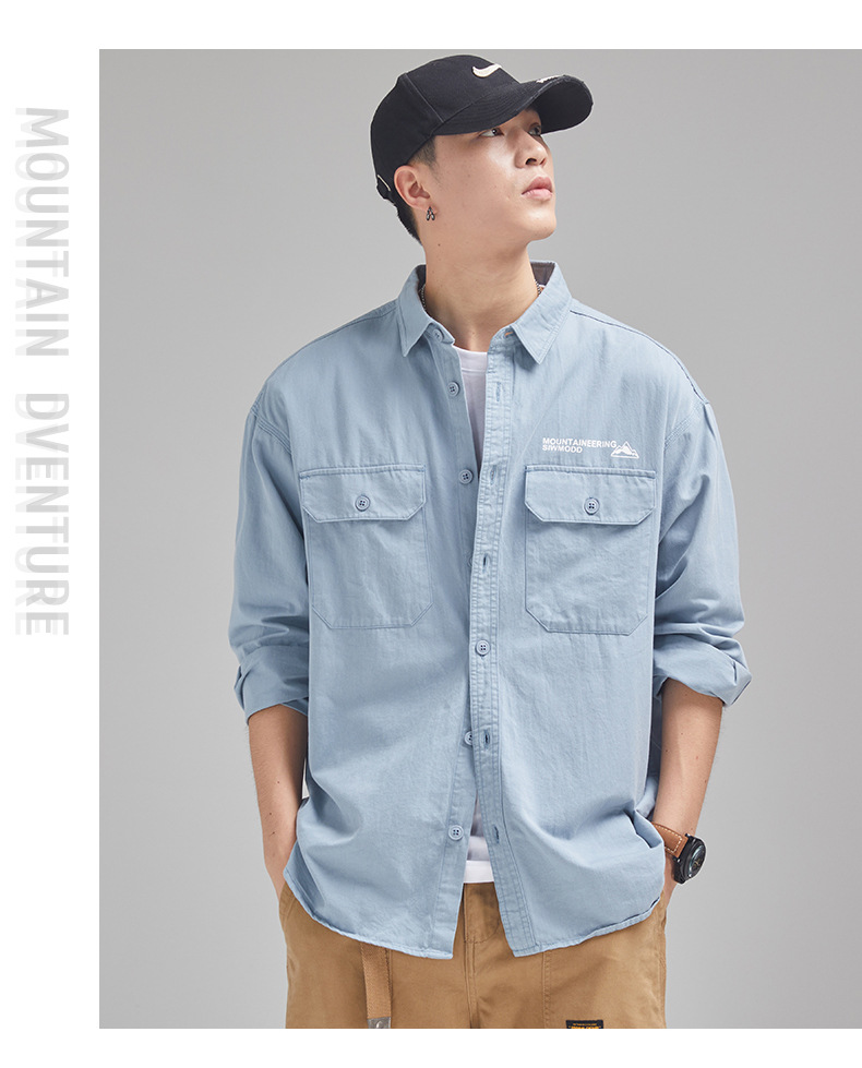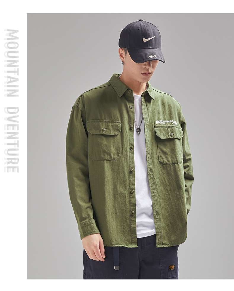シャツジャケット カバーオール メンズ 長袖 英文字 プリント 大容量ポケット ボタン留め ライトアウター ワークシャツ ゆったり おしゃれ 綿100% 作業着
