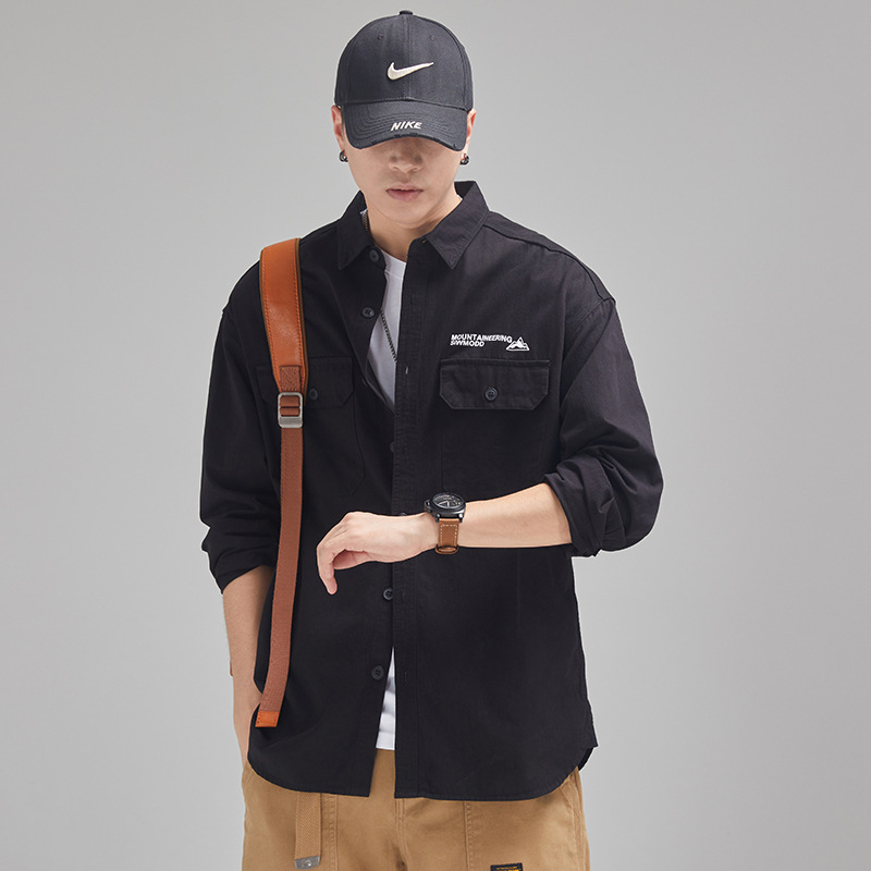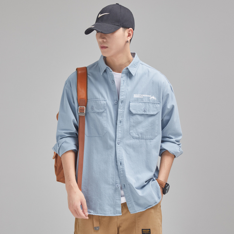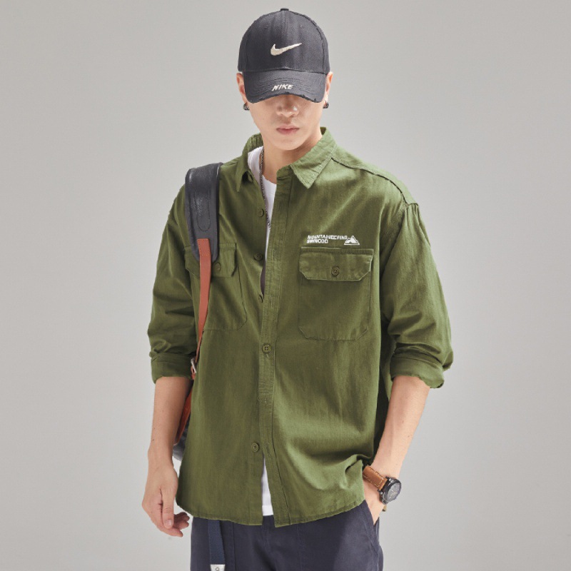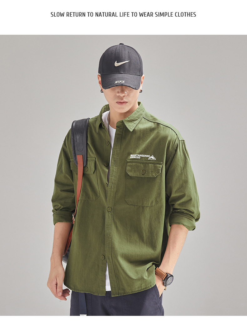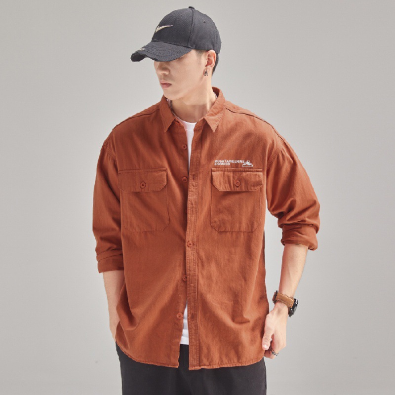 シャツジャケット カバーオール メンズ 長袖 英文字 プリント 大容量ポケット ボタン留め ライトアウター ワークシャツ ゆったり おしゃれ 綿100% 作業着