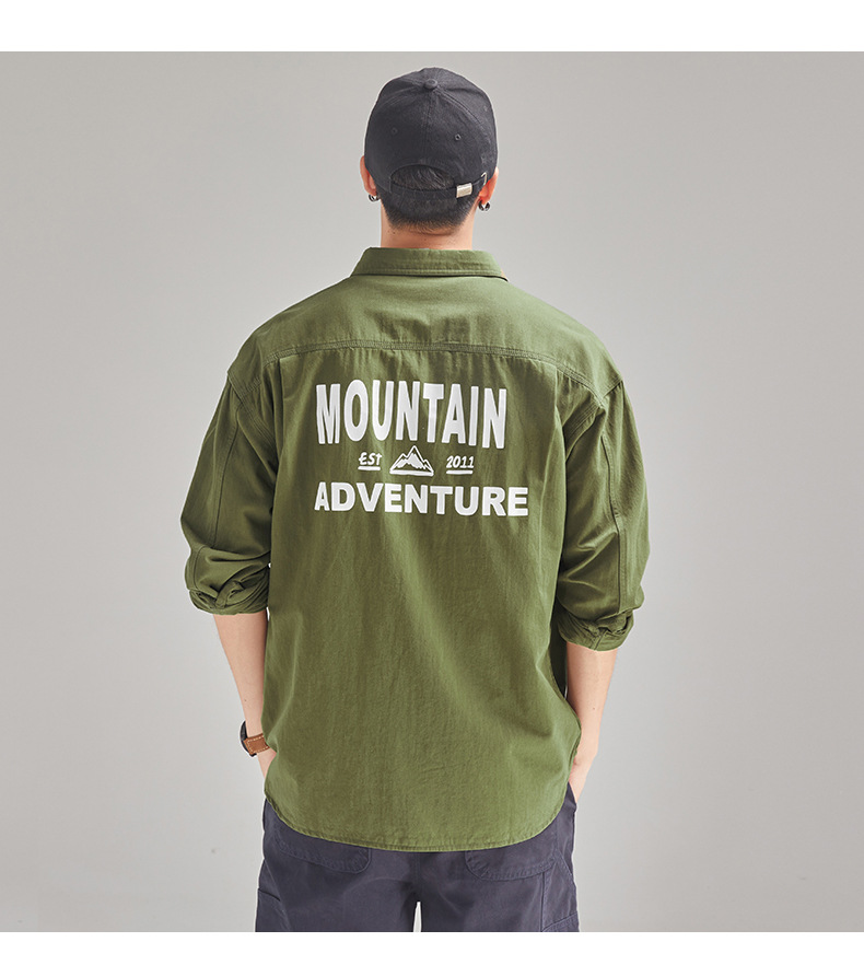 シャツジャケット カバーオール メンズ 長袖 英文字 プリント 大容量ポケット 綿100% ボタン留め ゆったり ライトアウター ワークシャツ 作業着 おしゃれ