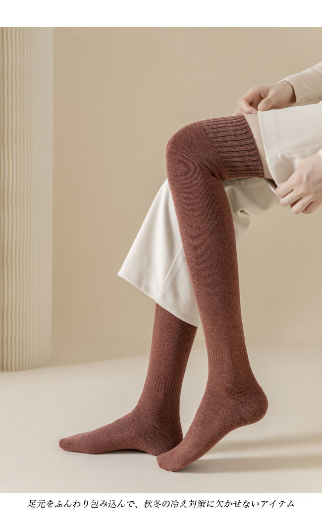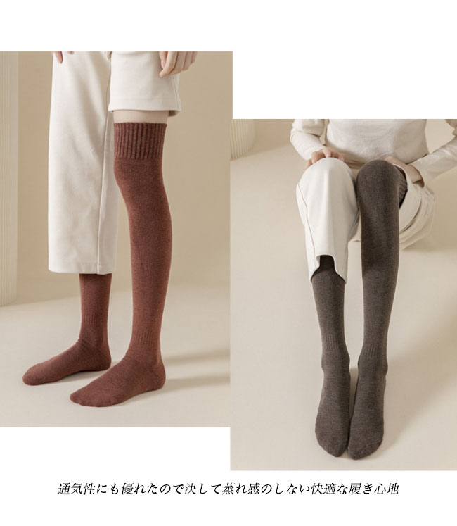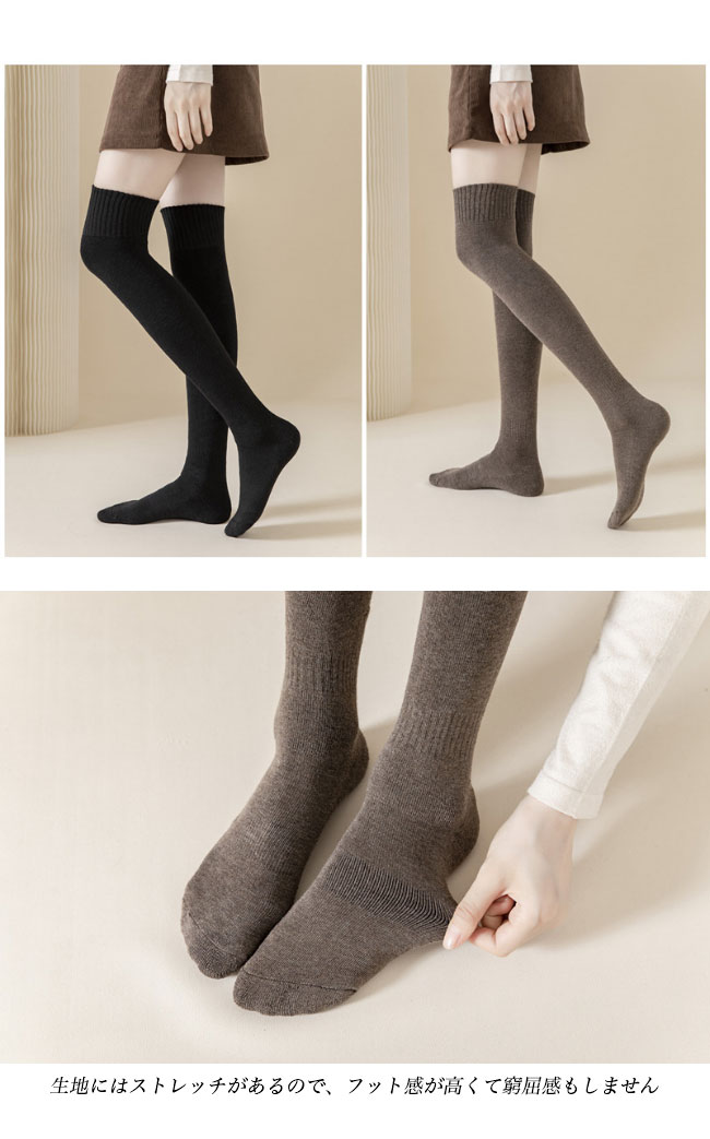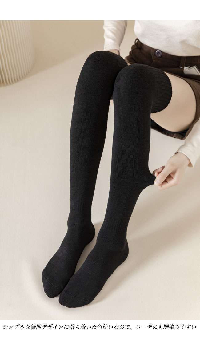 ニーハイソックス 厚手 レディース 靴下 冬 秋 ソックス オーバーニー 厚手ソックス ストレッチ リブソックス 綿混 無地 オーバーニーソックス 森ガール ロリータ お洒落 美脚 着 せ ブラック グレー イエロー ブラウン ベージュ