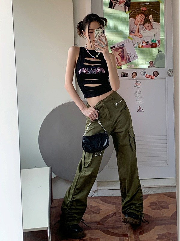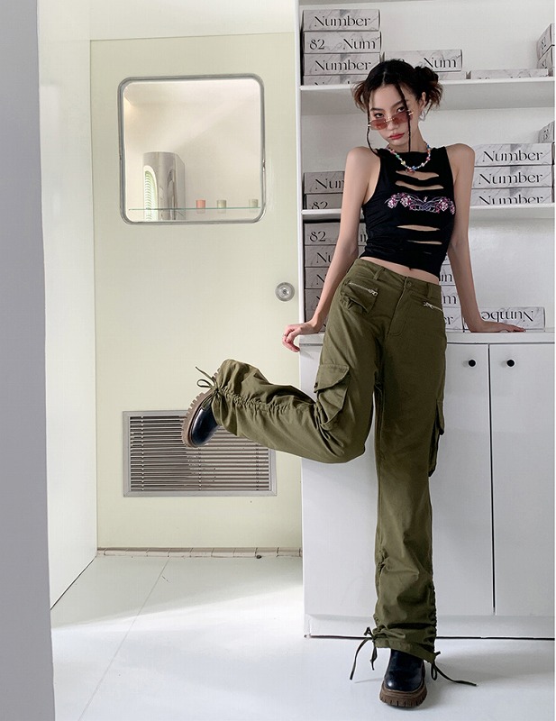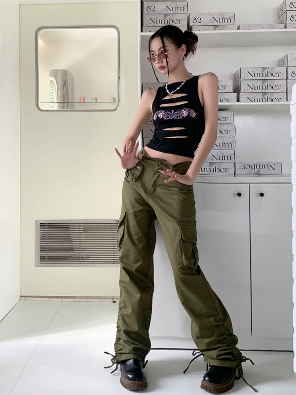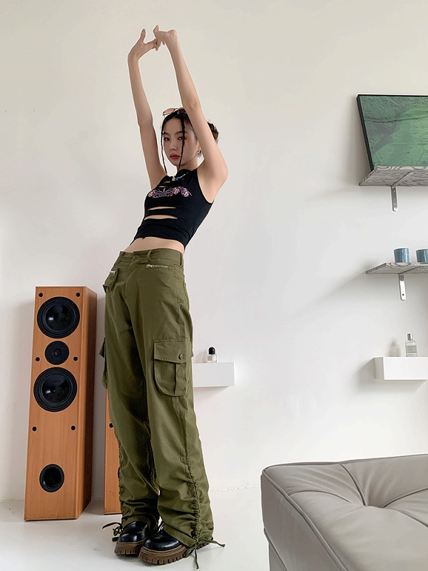 シャーリング カーゴパンツ 韓国 ストリート オルチャン HIPHOP K-POP 原宿系 レディース 衣装 ダンス