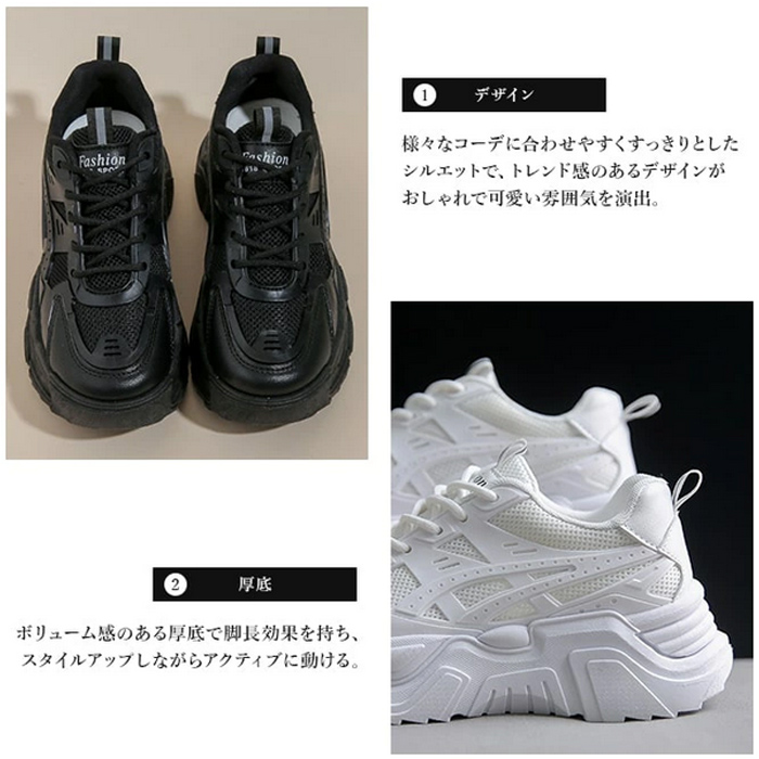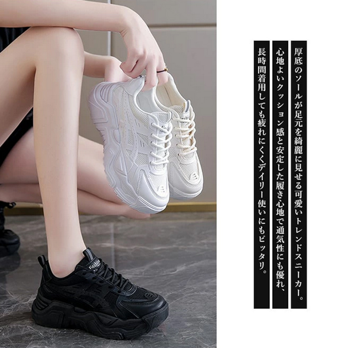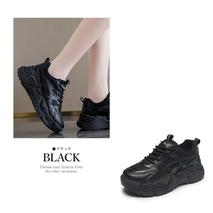 HK-1617 厚底 スニーカー レディース 黒 軽量 20代 歩きやすい エスエヌスタイル 厚底女子 おしゃれ 送料無料 子供 40