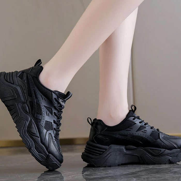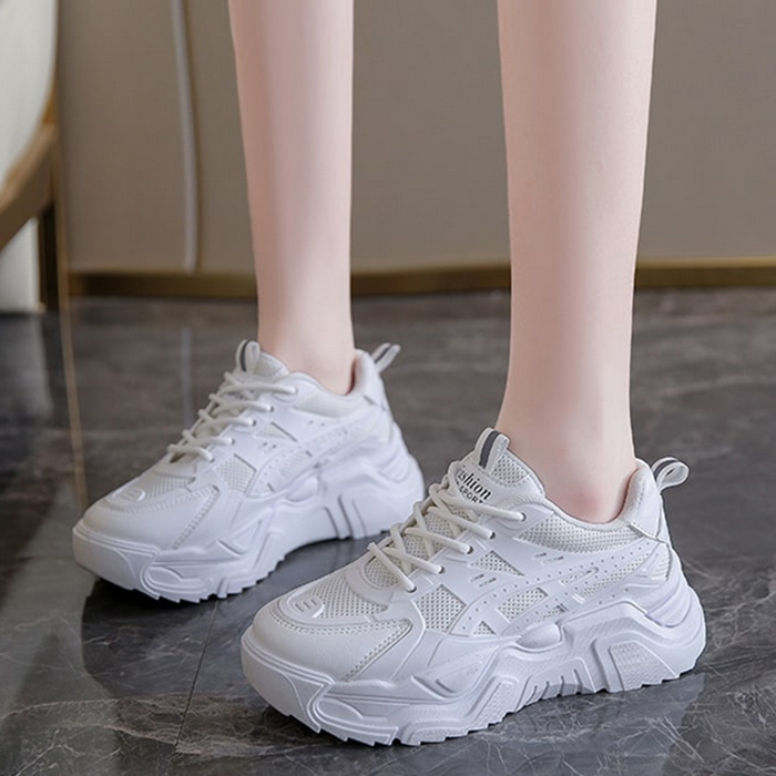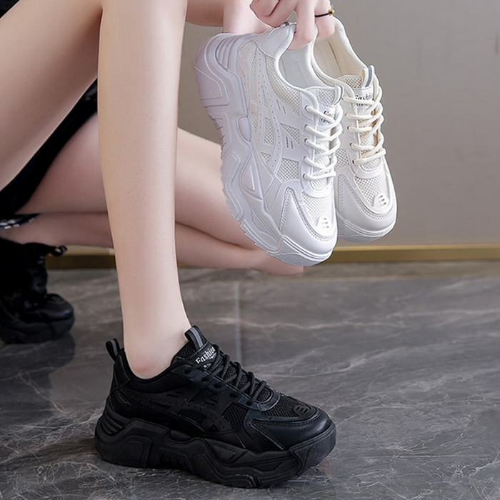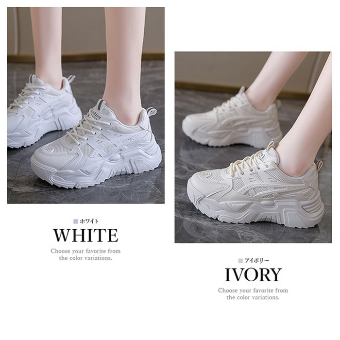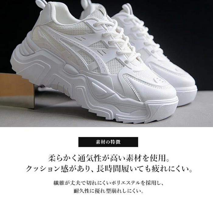 スタイルアップ効果を発揮しながら、アクティブに動く厚底スニーカー。