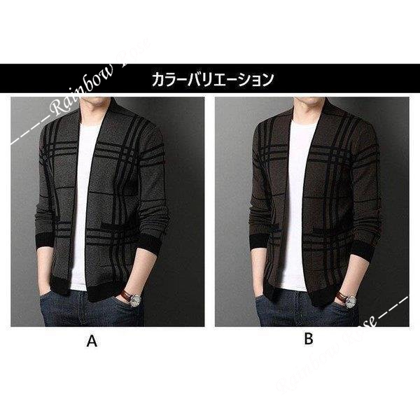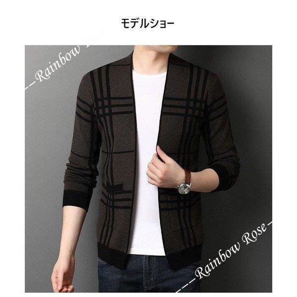 ニット カーディガン メンズ 秋冬 トップス 長袖セーター ショート丈ニットアウター 40代 通勤 スリム チェック柄ニットカーディガン ニットソー ビジネス