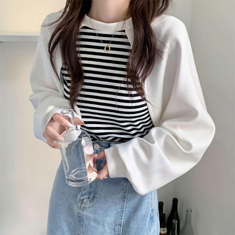 シンプルだけどお洒落見えするレイヤード風スウェットトップスです。