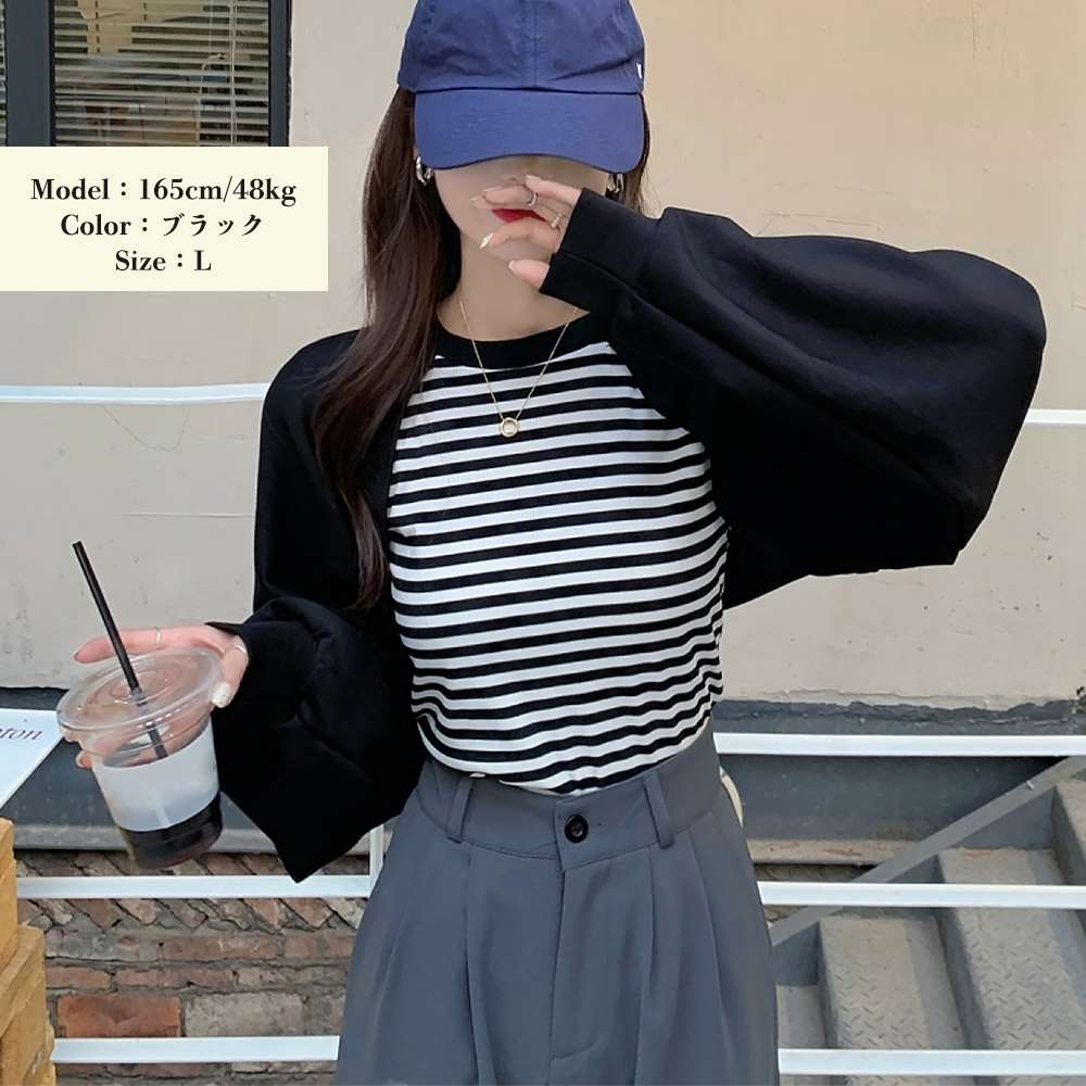 袖がふんわりと広がったバルーンスリーブで可愛さをプラスしてくれるスウェットです。