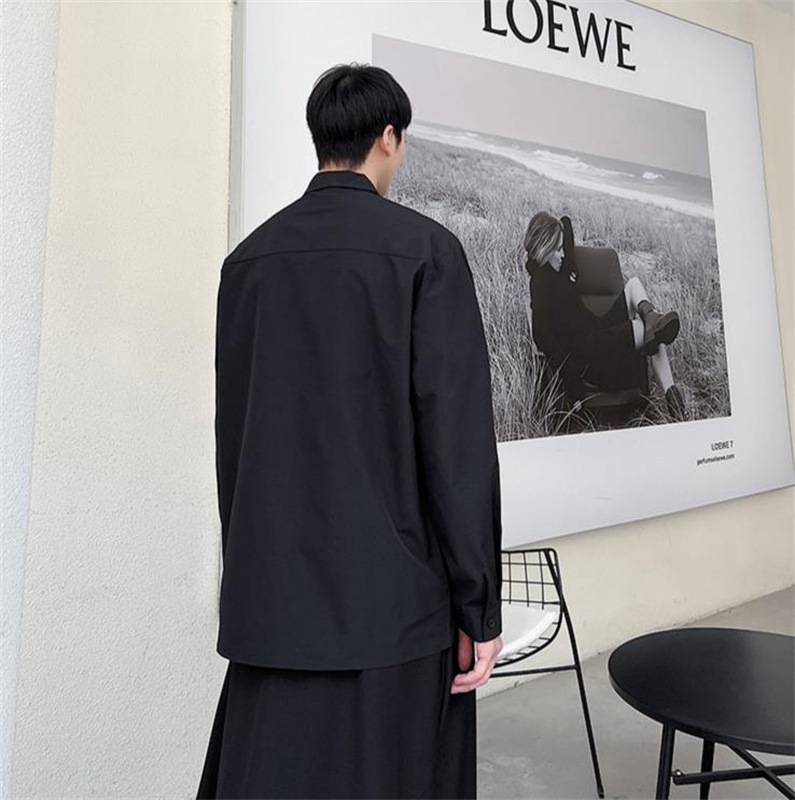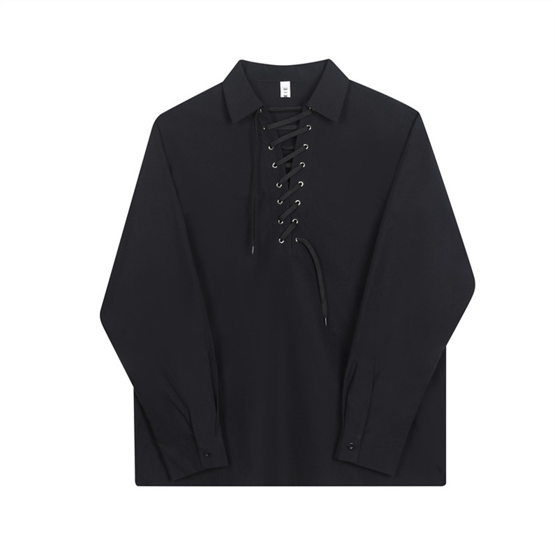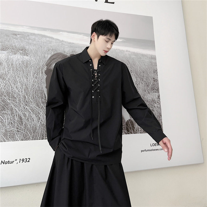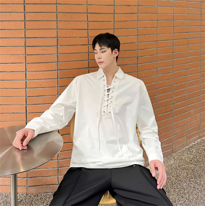 メンズ シャツ カジュアルシャツ 長袖 ワーク 上着 春秋 白黒 スタイリッシュ クラブ ダンスウェア ワイシャツ 発表会 編み上げ 無地 公演 男子トップス