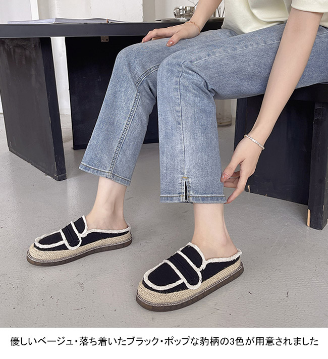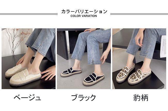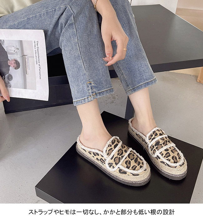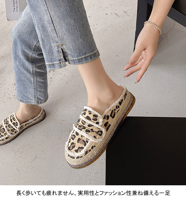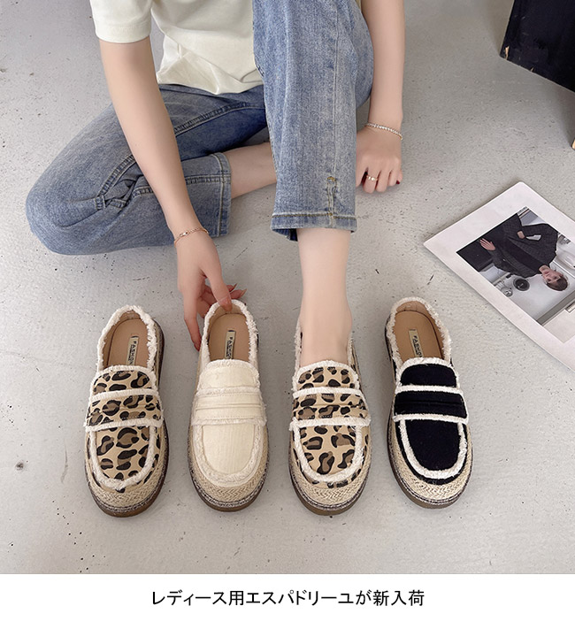 エスパドリーユ レディース スリッポン 豹柄 スリッパ フラットシューズ ローファー キャンバス カジュアル 楽ちん キャンバスシューズ 滑り止め フラット底 ヒョウ柄 カジュアルシューズ おしゃれ ベージュ ブラック