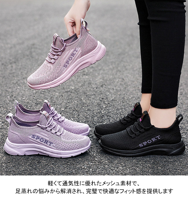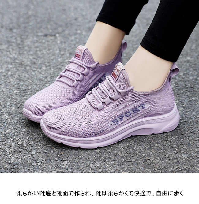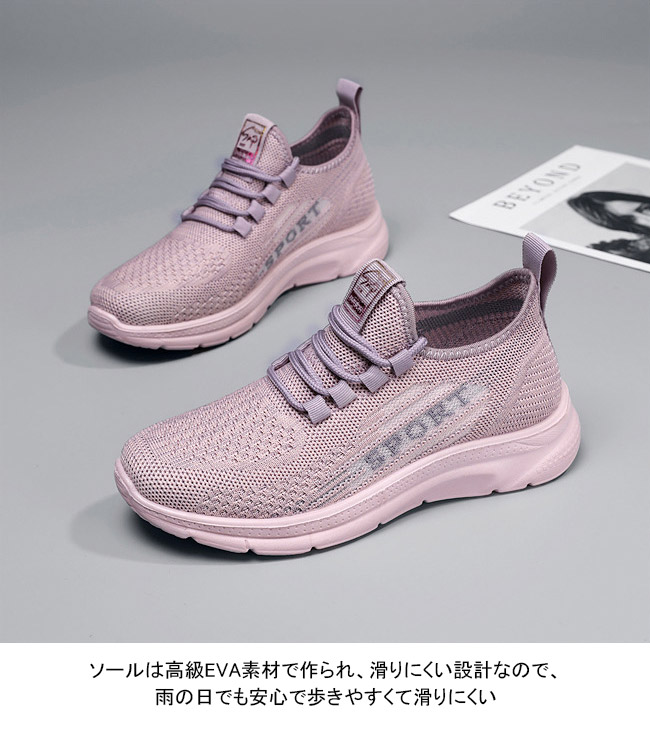 スニーカー シューズ レディース ニット ウォーキング 防滑 防摩耗 蒸れない 伸縮性 カジュアル おしゃれ 快適 フィット柔らかい 軽量 通学 通勤 ジム 衝撃吸収 散歩 スリッポン ランニングシューズ
