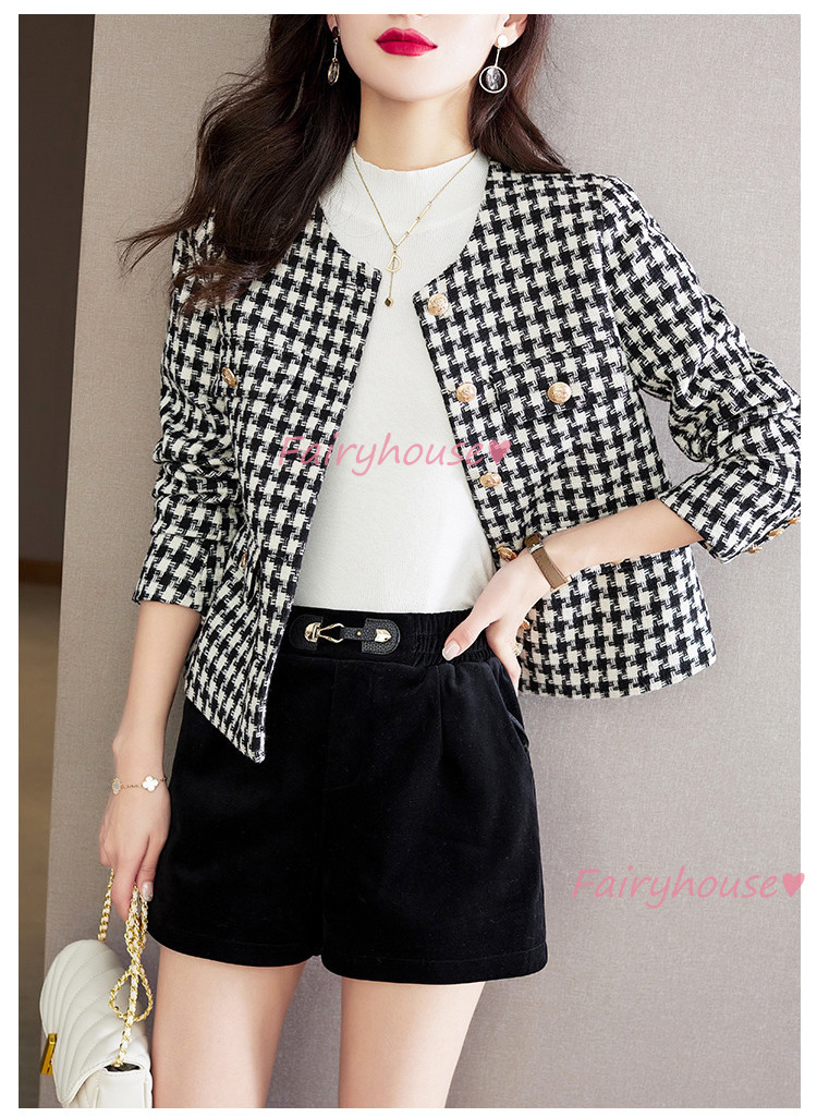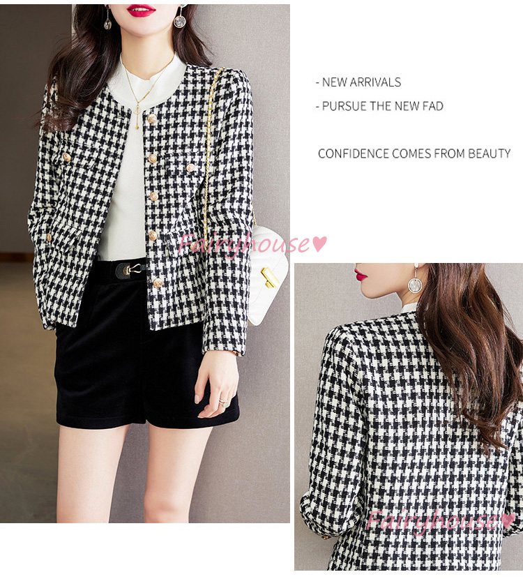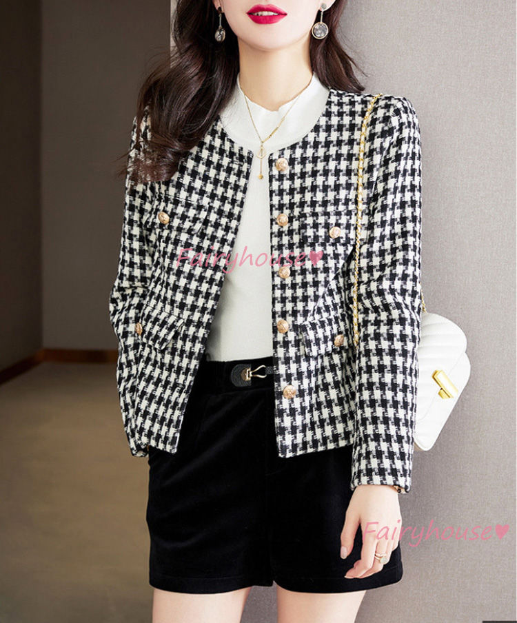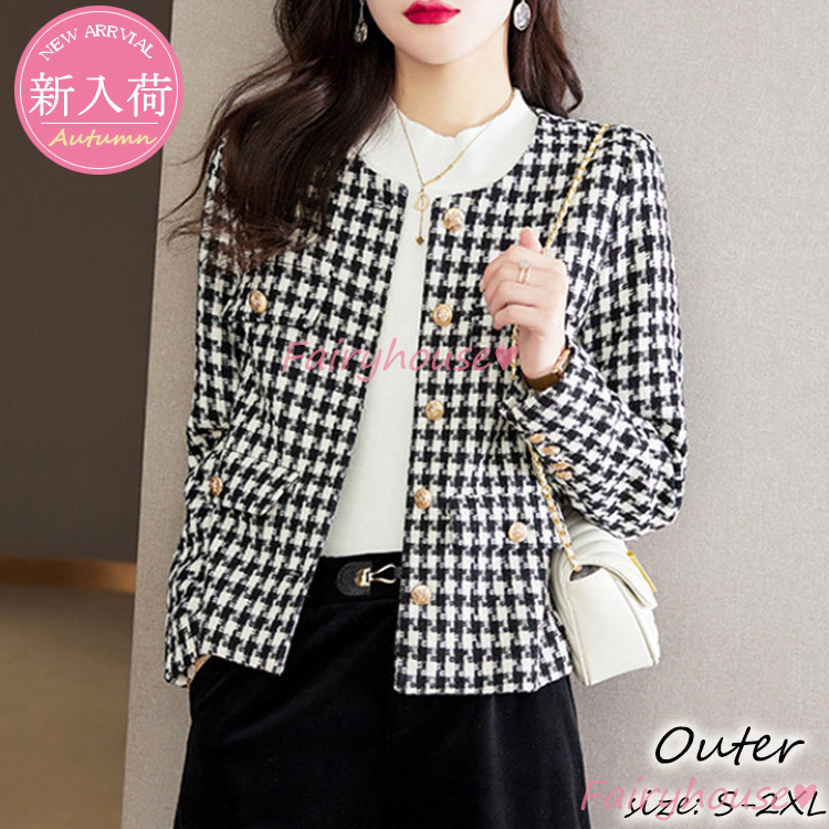連携キーワード :ツイードジャケット レディース 40代 長袖ノーカラージャケット 千鳥格子ショット丈ツイードコート 春コートアウター 秋服 大人韓国風 通勤OL オフィス 結婚式 入学式 卒業式 30代 50代