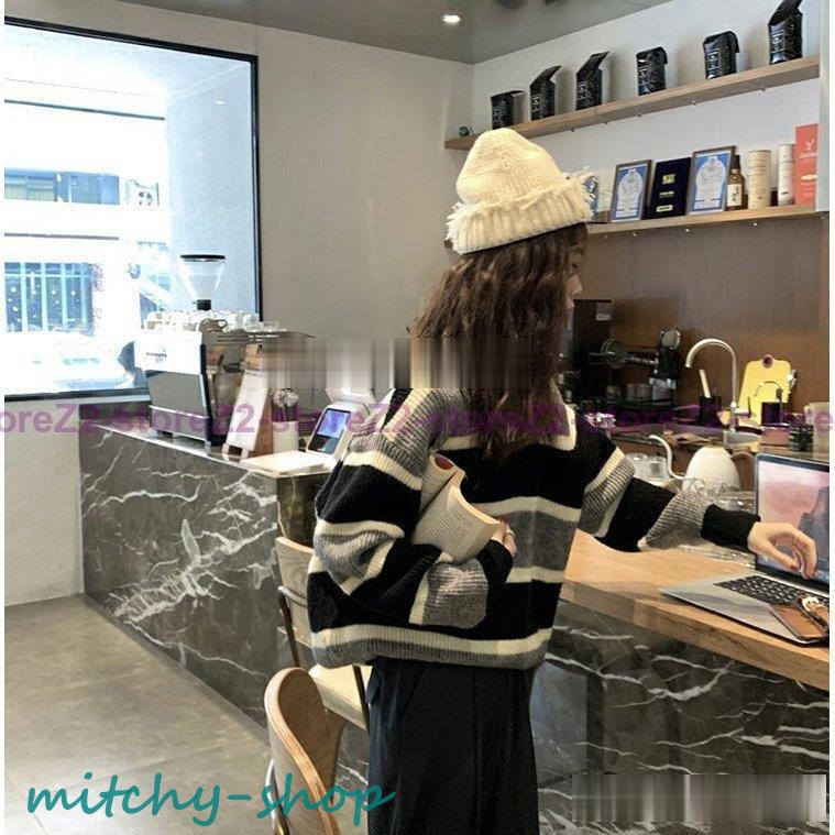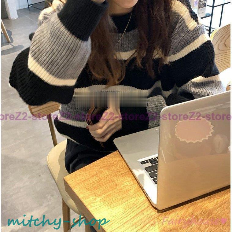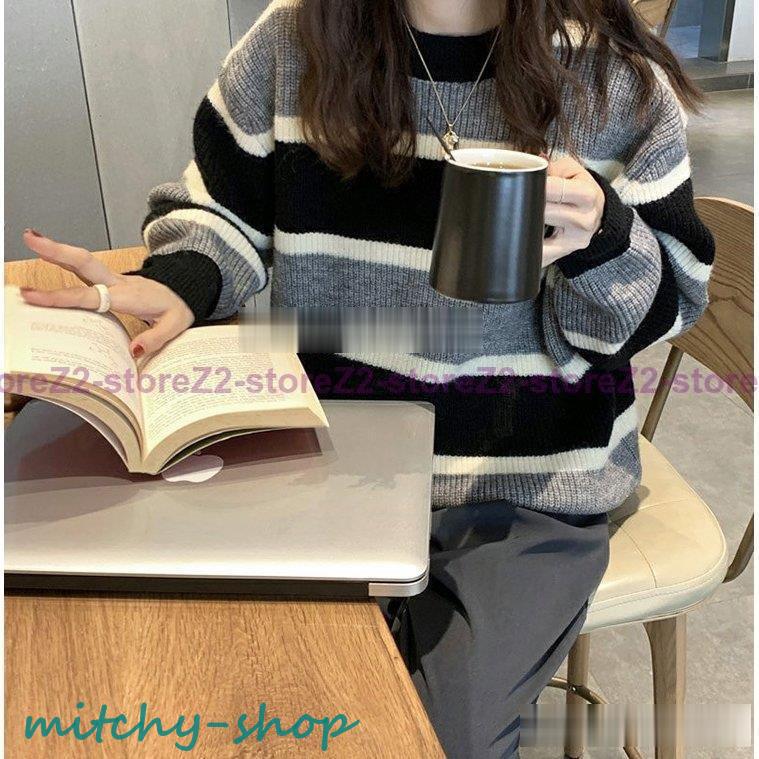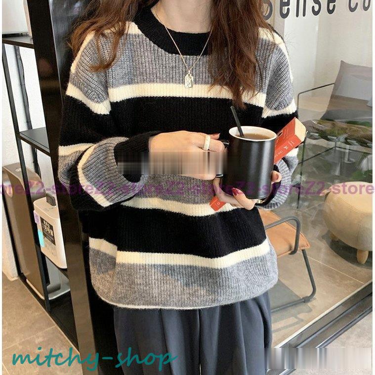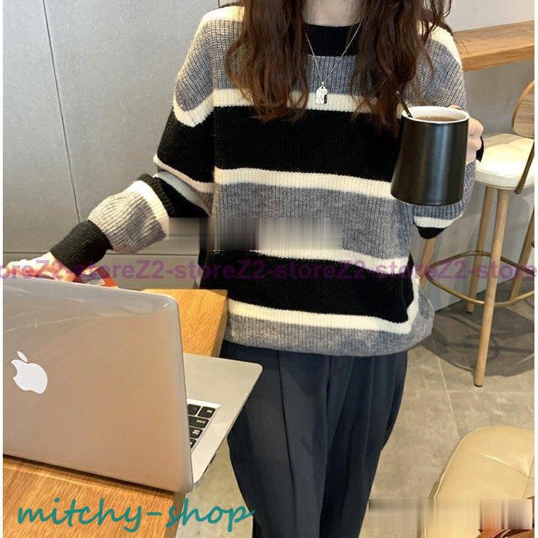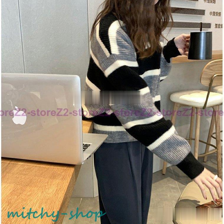 連携キーワード:ニットトップス レディース 秋冬 40代 長袖 ニットトップス ボーダー柄セーター ショット丈ニットソー ゆったりプルオーバー 韓国風 オシャレ秋服 50.代 30代