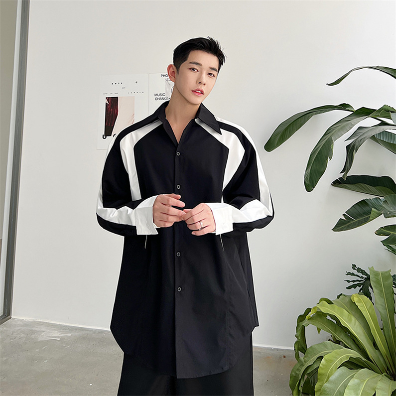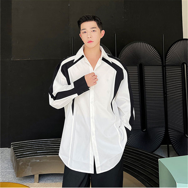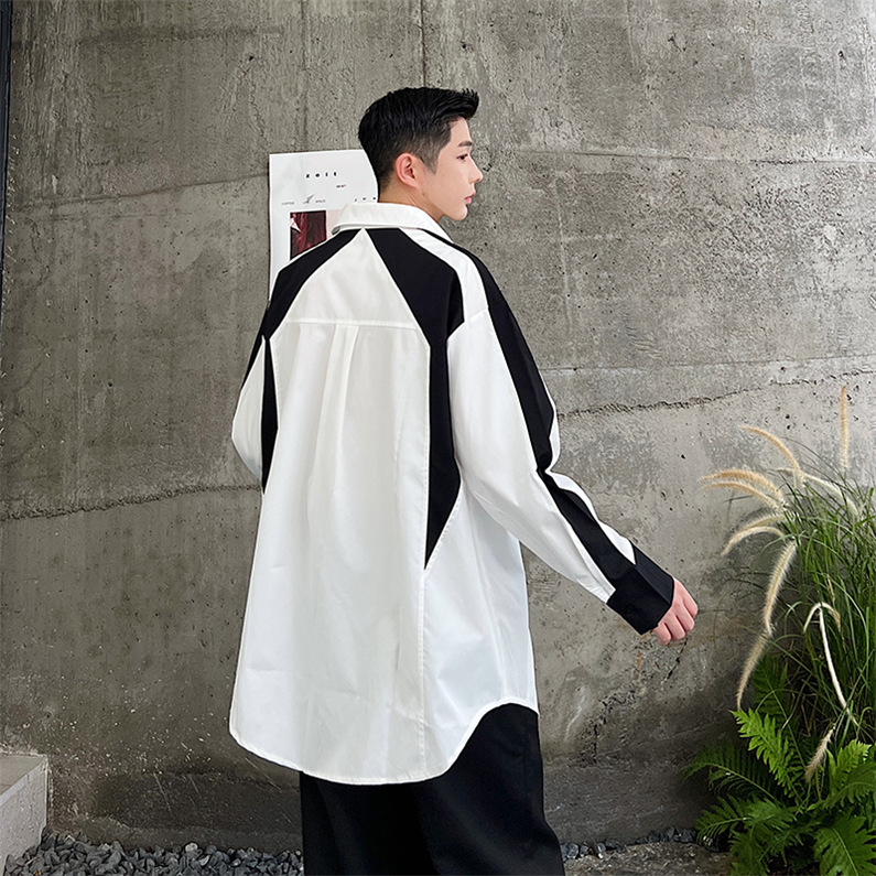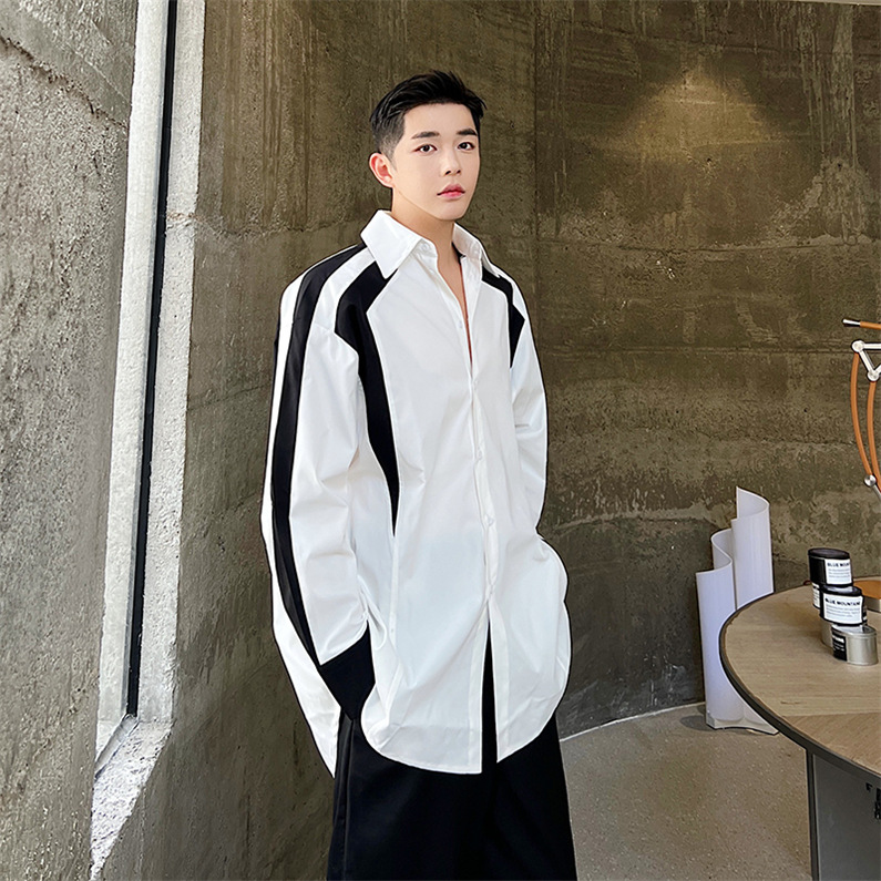 メンズ シャツ カジュアルシャツ 長袖 ワーク 上着 男子トップス ダンスウェア ゆったり ワイシャツ 無地 発表会 白黒 春秋 公演 スタイリッシュ クラブ