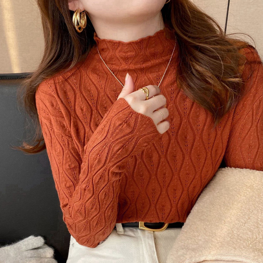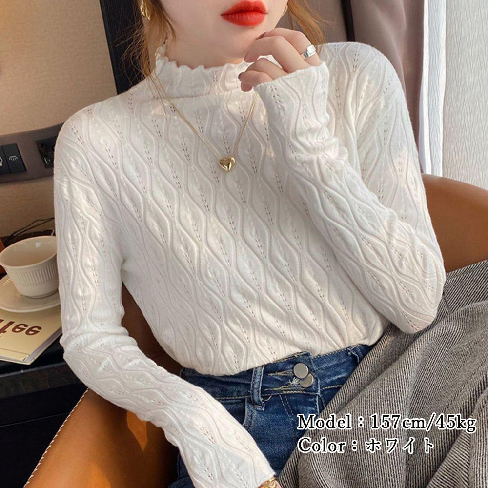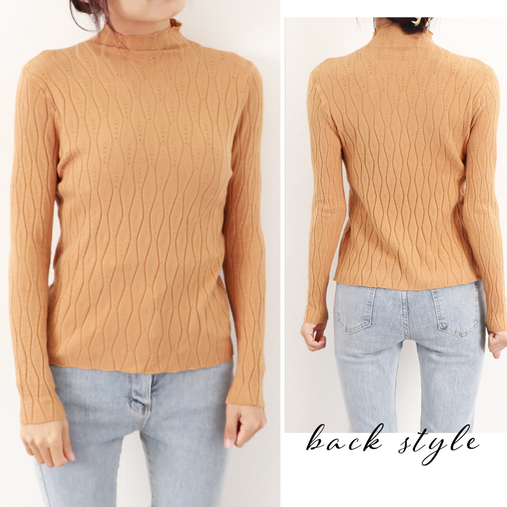 ジャカード編みと波模様が存在感と放つプチハイネックニットトップス