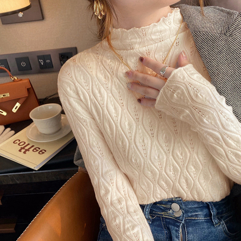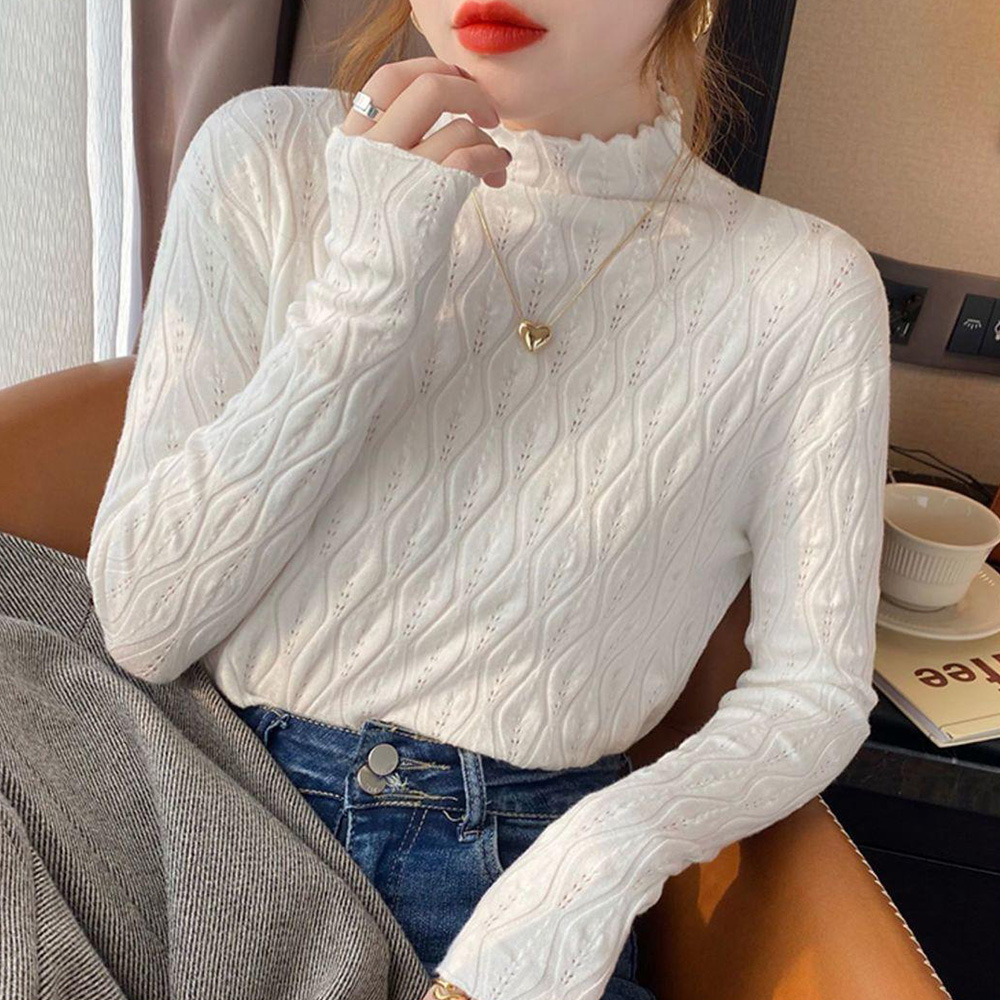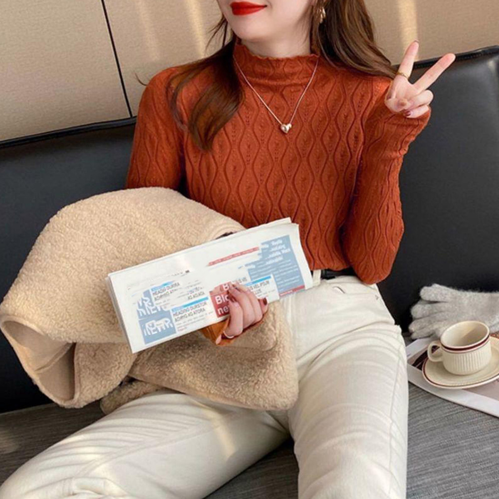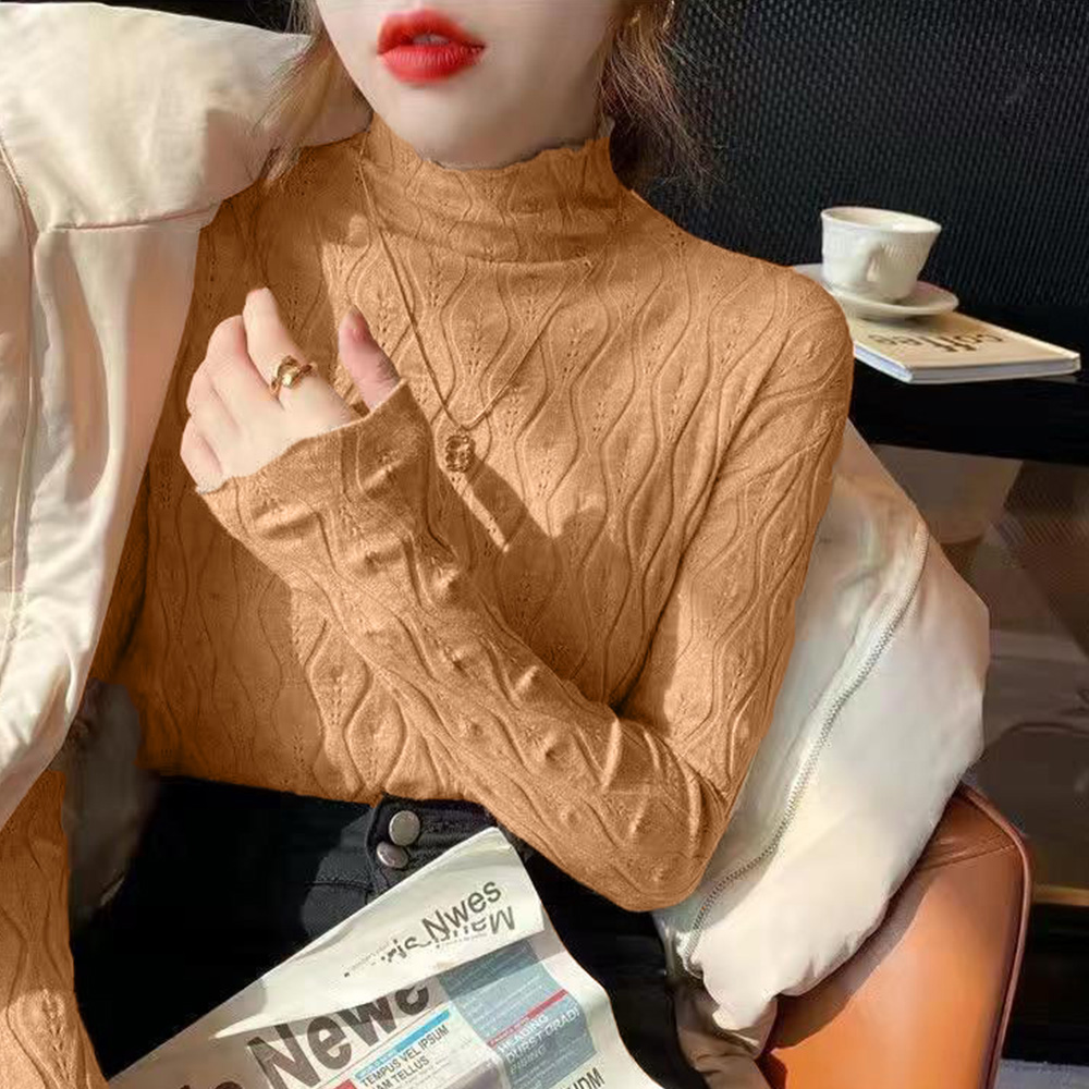ジャカード編みと波模様が存在感と放つプチハイネックニットトップス