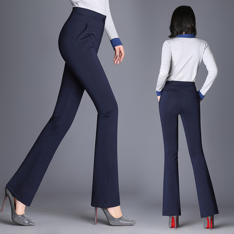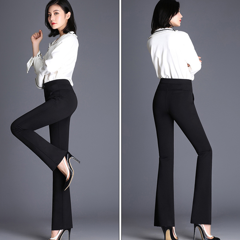 ブーツカット スラックス フォーマル 通勤 フレアパンツ ロング丈 コーデ 美尻 OL オフィス 着痩せ ストレッチ シルエット ハイウエスト