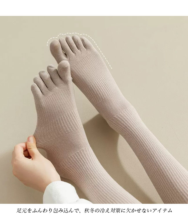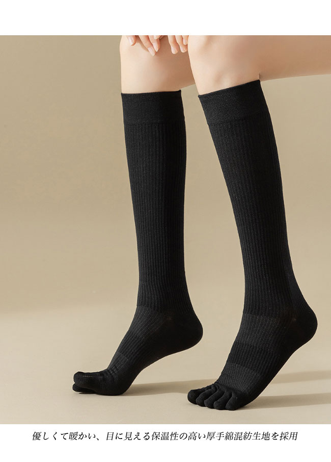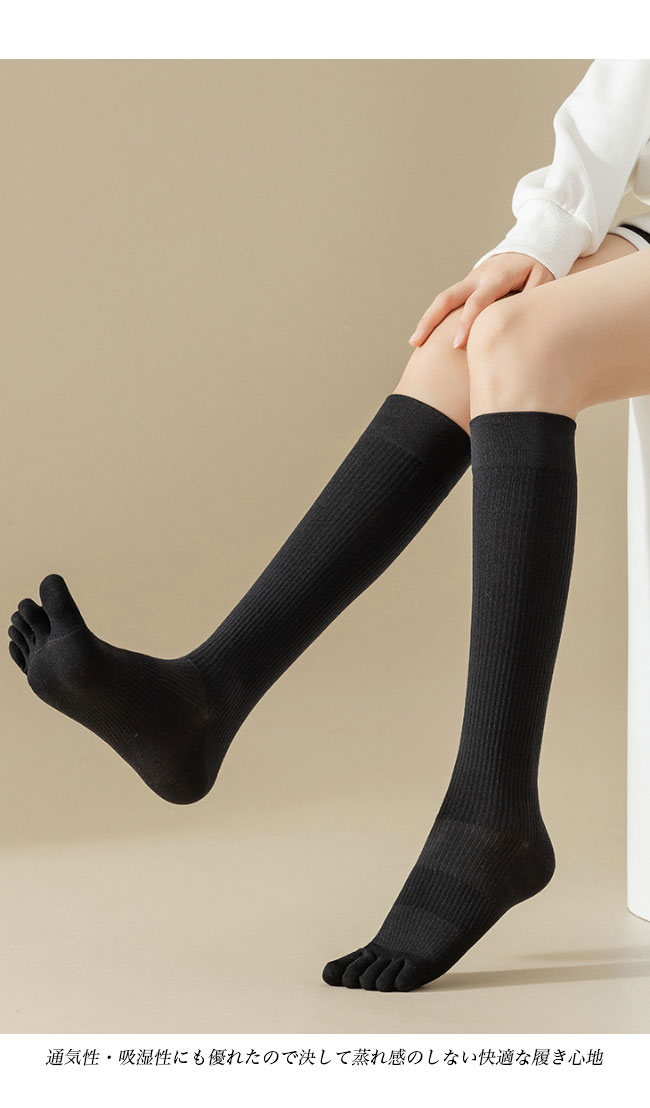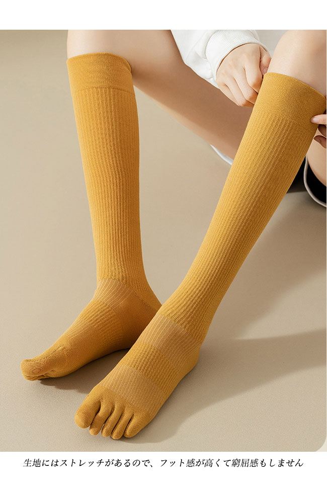 五本指 ハイソックス レディース 靴下 防臭 五本指ハイソックス リブソックス 厚手 5本指ソックス ハイ 速乾 吸汗 綿混 無地 コットンソックス 五本指靴下 ストレッチ 厚手ソックス 冬 秋 ヨガ 縄跳び スポーツソックス 滑り止め