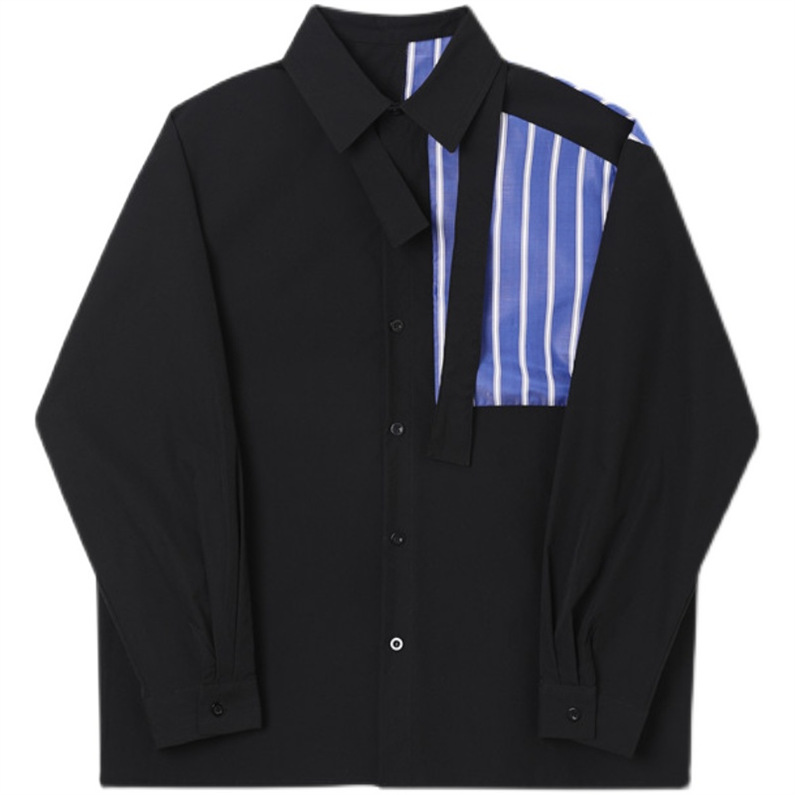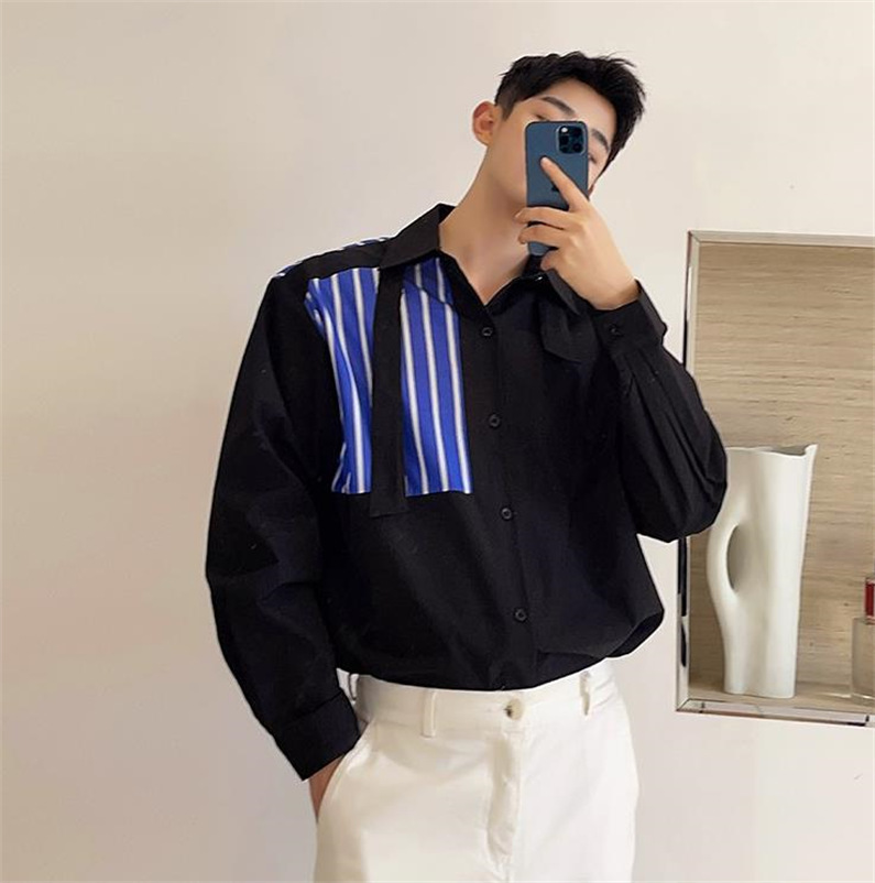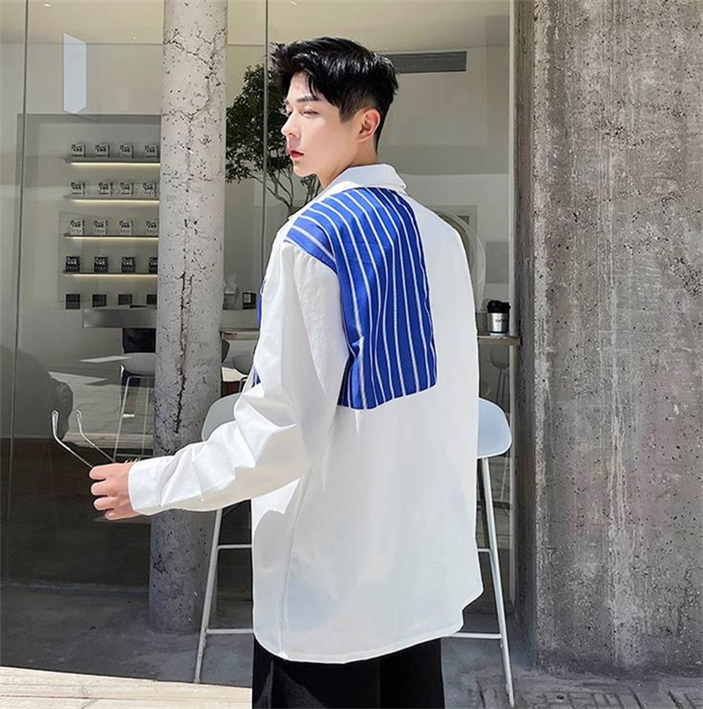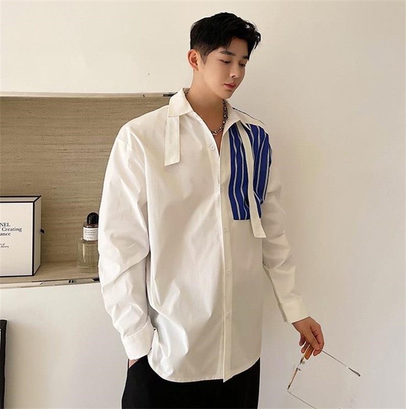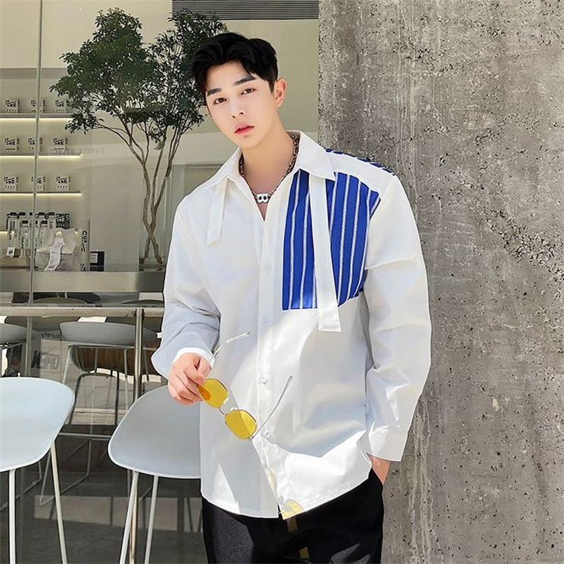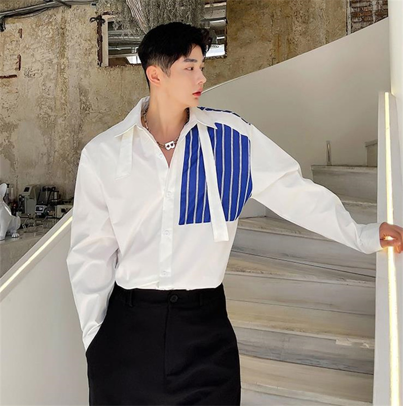 メンズ シャツ カジュアルシャツ 長袖 白黒 上着 ボタン留め 男子トップス ストライプ 春秋 発表会 公演 ライブ クラブ ダンスウェア オシャレ ワイシャツ