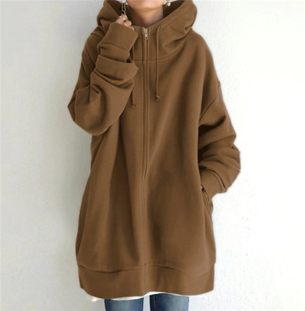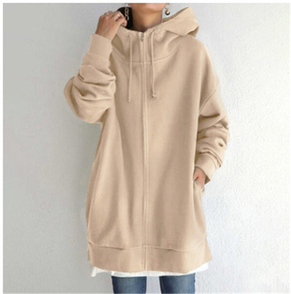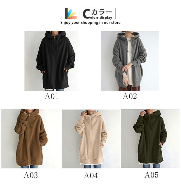 値下げ ジップレディース トップス 前開き ジップアップ 長袖 ゆったり 無地 着回し フード付 アウタ