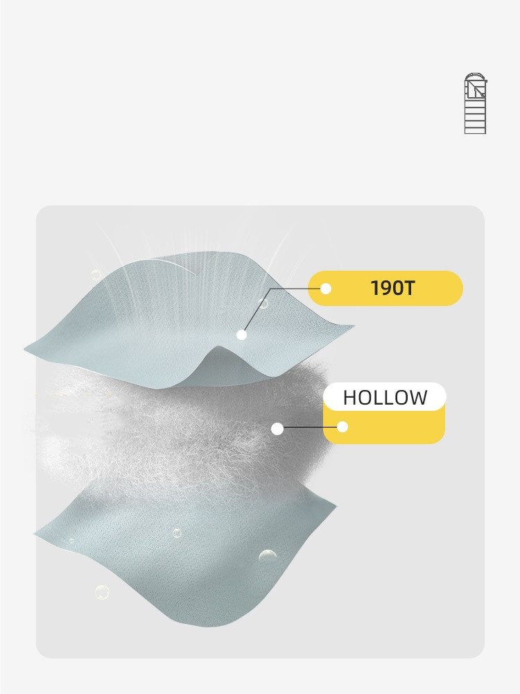 素材構成 側生地:さらさら190T高密度生地(ポリエステル100%) 撥水コーディング、耐裂性と速乾性に優れています。内生地:肌触りが良いソフト生地(ポリエステル100%)、柔らかくて快適な素材で、いつでも寝袋に入ると暖かい感じがします。中綿:防寒性能に優れたシルクコットンを採用しています。肌触りと寝心地がよいです。