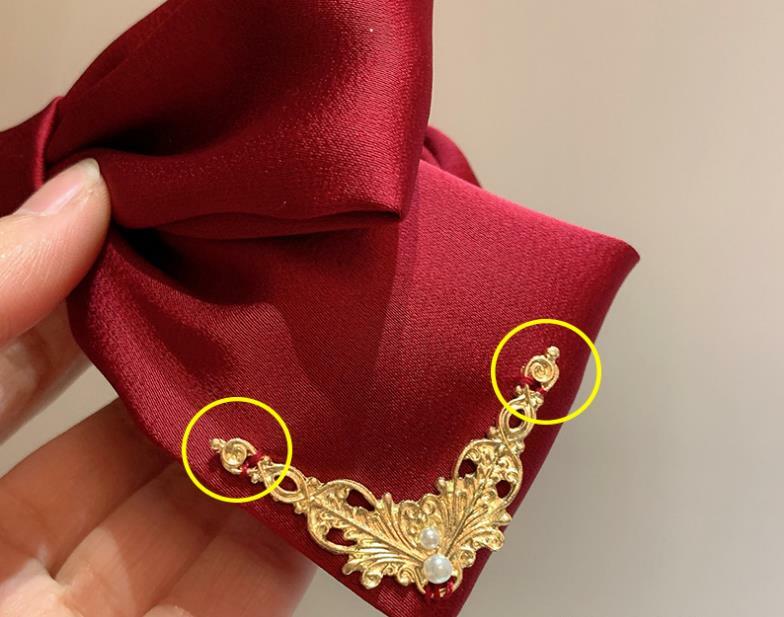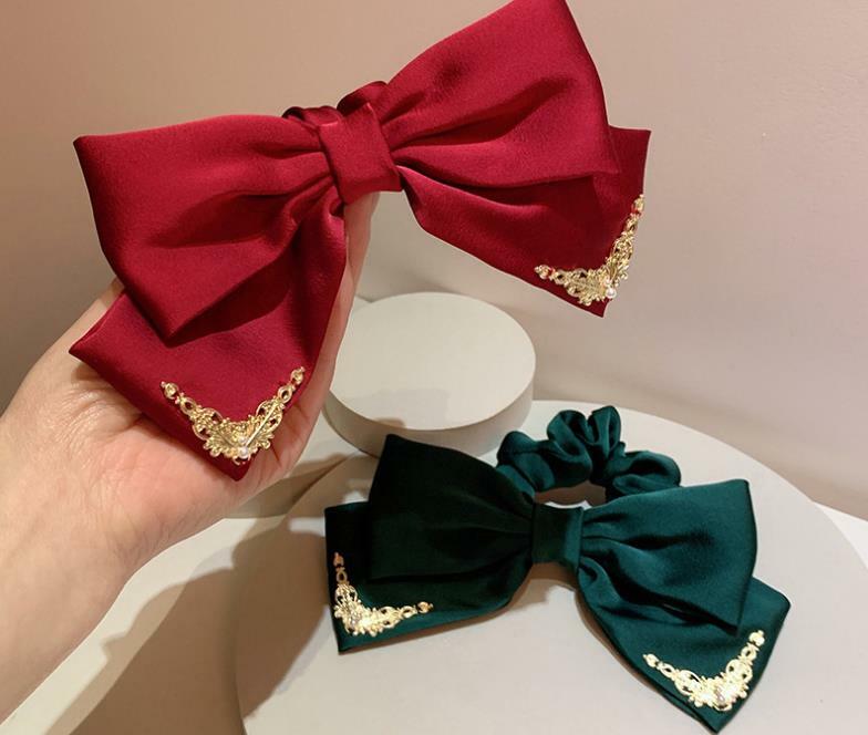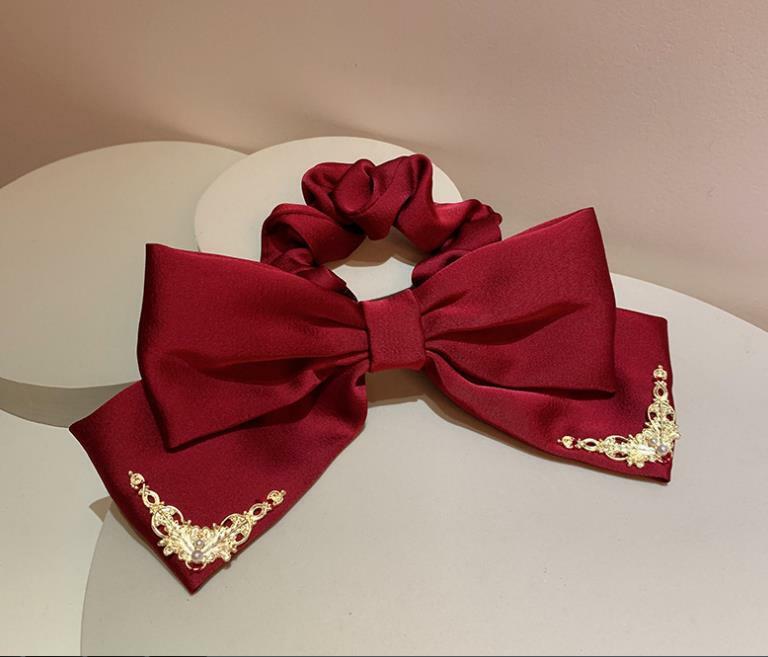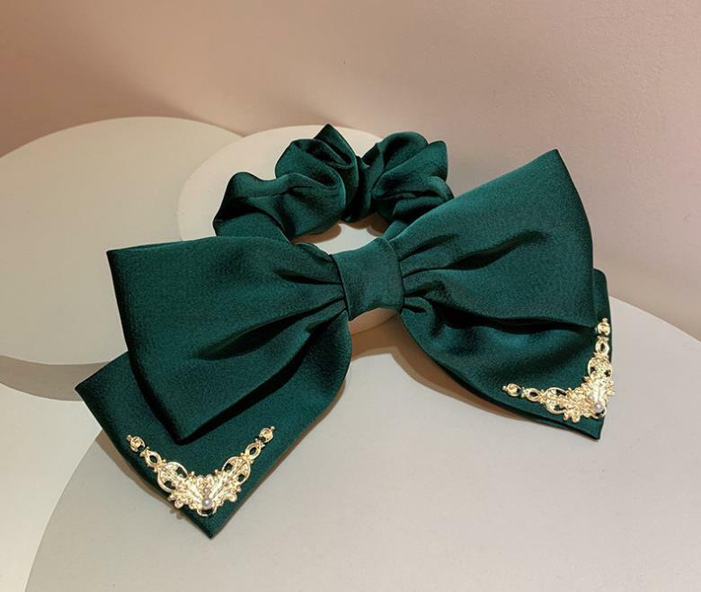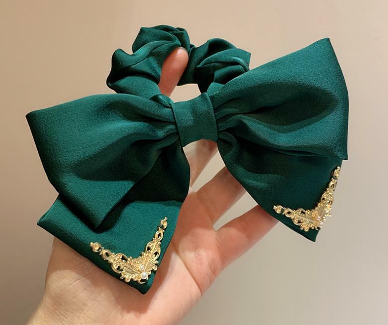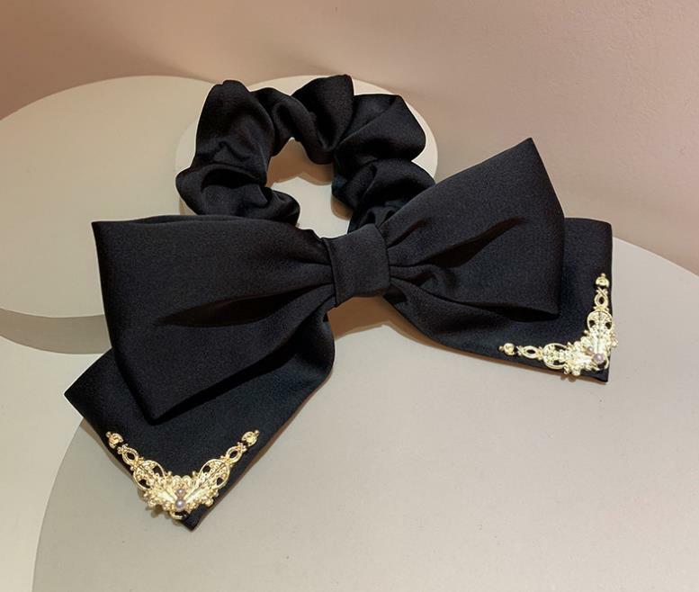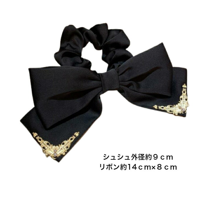 シュシュ ゴールドメタルチャームサテンリボンシュシュ 新発売セール