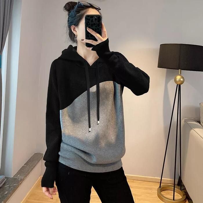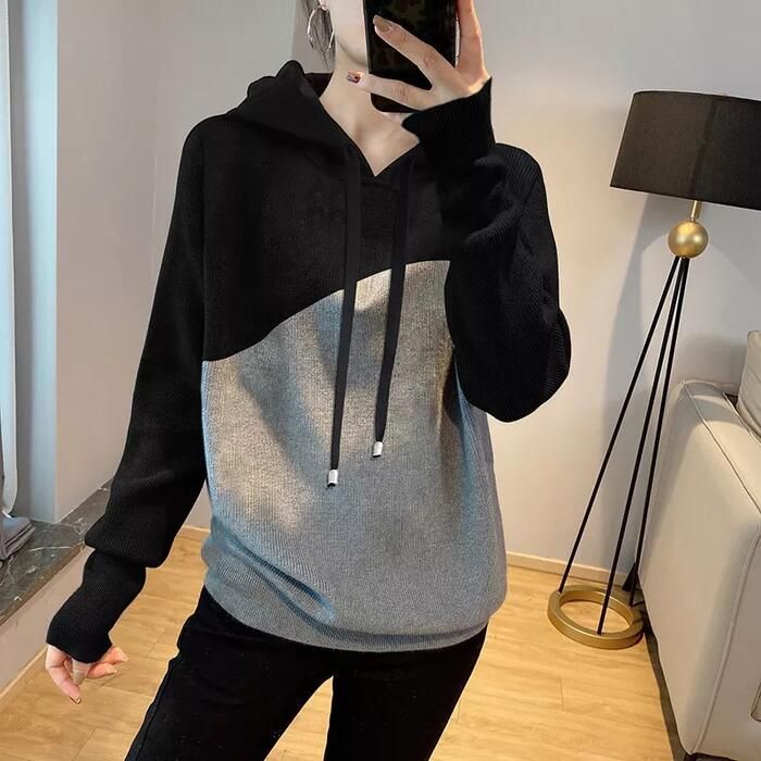 トップス ニット セーター フーディ レディース きれいめ ゆった 長袖 切り替え バイおしゃれ かっこいい フェミニン 可愛い 大人 カジュアル
