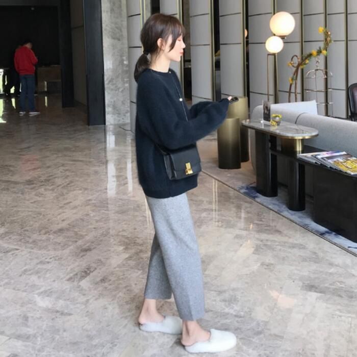 トップス ニット セーター モヘア ふわふわ レディース おしゃれ きれいめ 暖かい フェミニン ゆったり クルーネック 長袖 可愛い カジュアル ナチュラル 大人