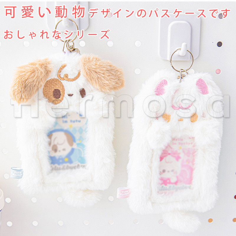 定期入れ パスケース フック付き ふわふわ 犬 動物 送料無料 アイドルカード フ
