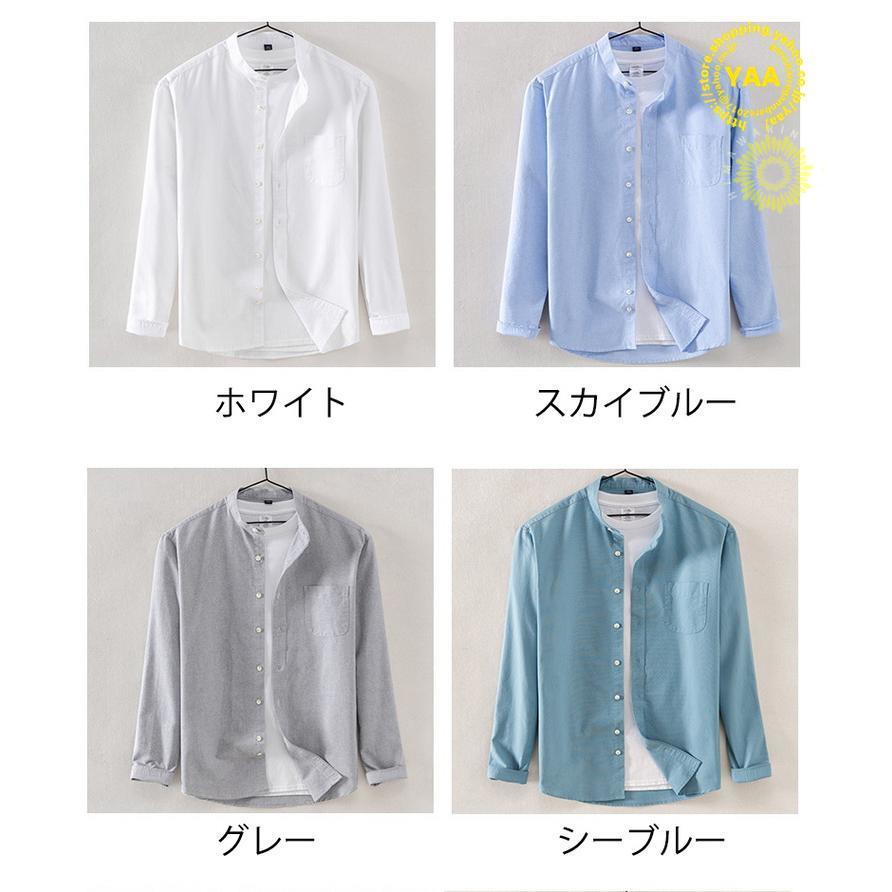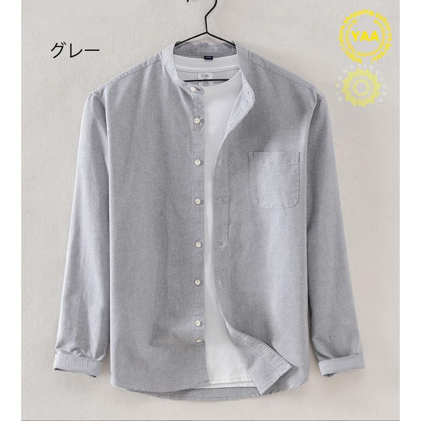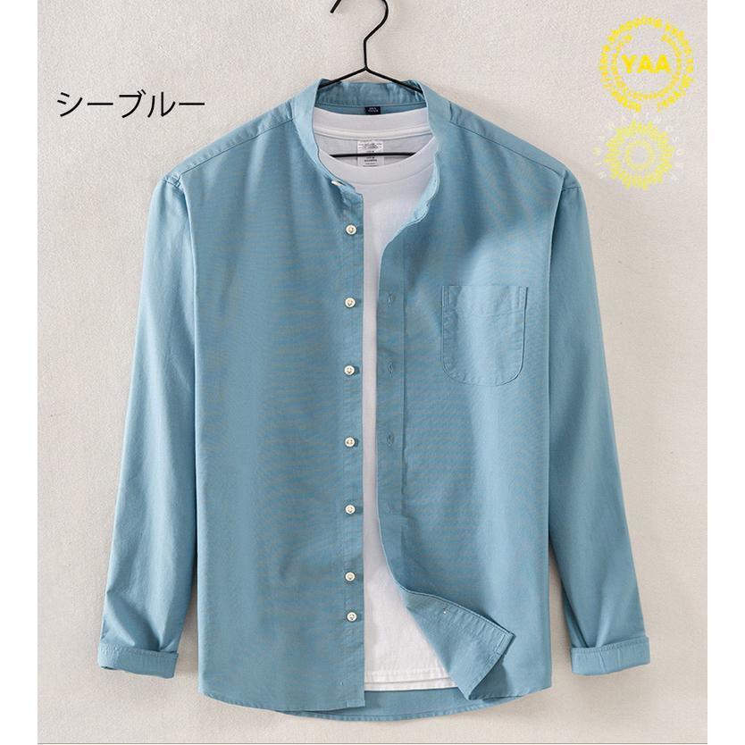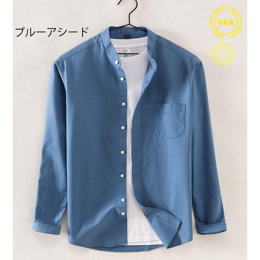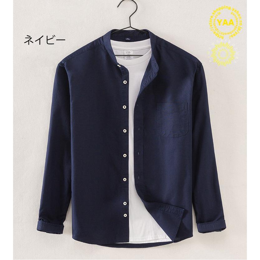 バンドシャツ メンズ 長袖 シャツ カジュアルシャツ トップス 無地 スタンド ビジネスカジュアル 40代 50代 60代