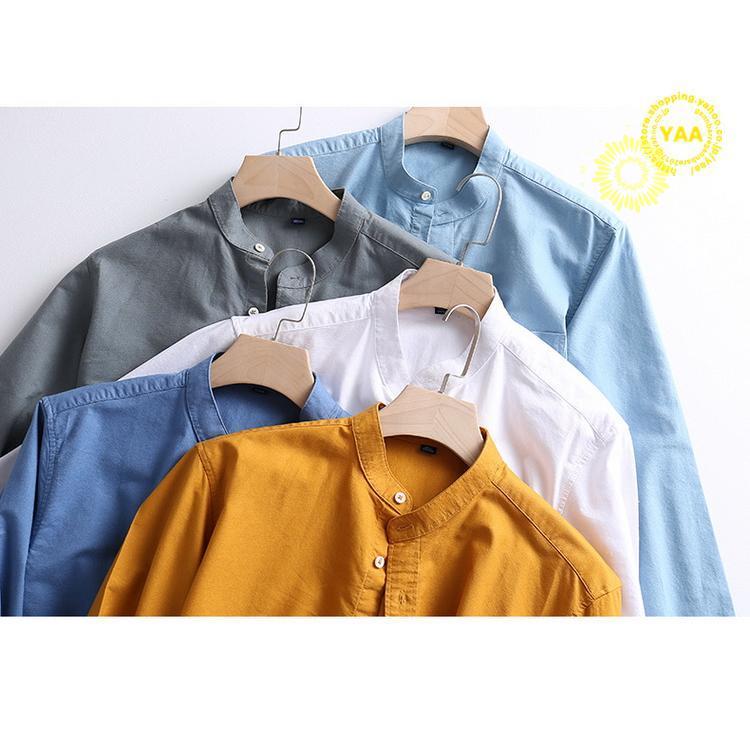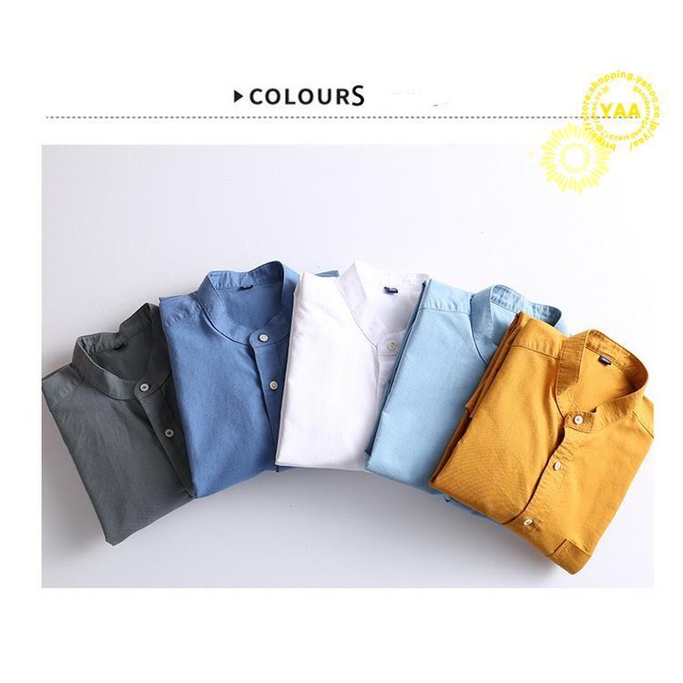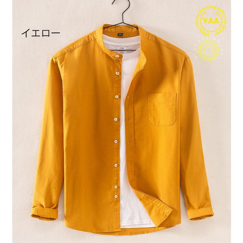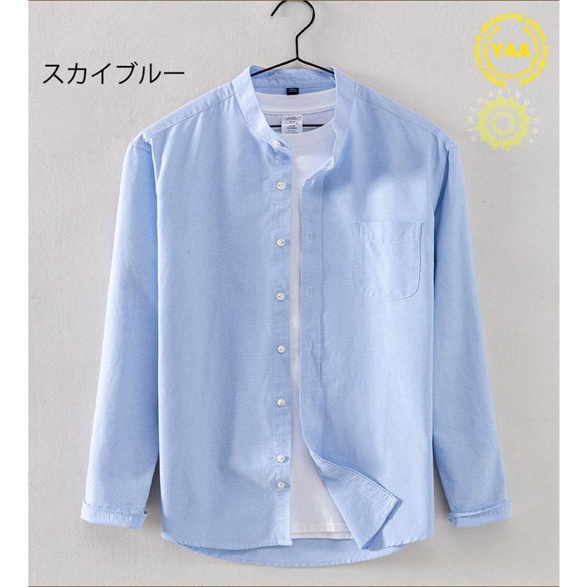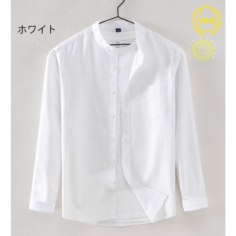 バンドシャツ メンズ 長袖 シャツ カジュアルシャツ トップス 無地 スタンド ビジネスカジュアル 40代 50代 60代
