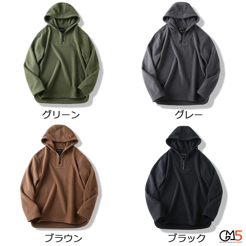 ハーフジッパー パーカー メンズ フリースパーカー トップス 無地 暖かい 秋服 冬服 ブルオーバ フード付き スポーツ 紳士服
